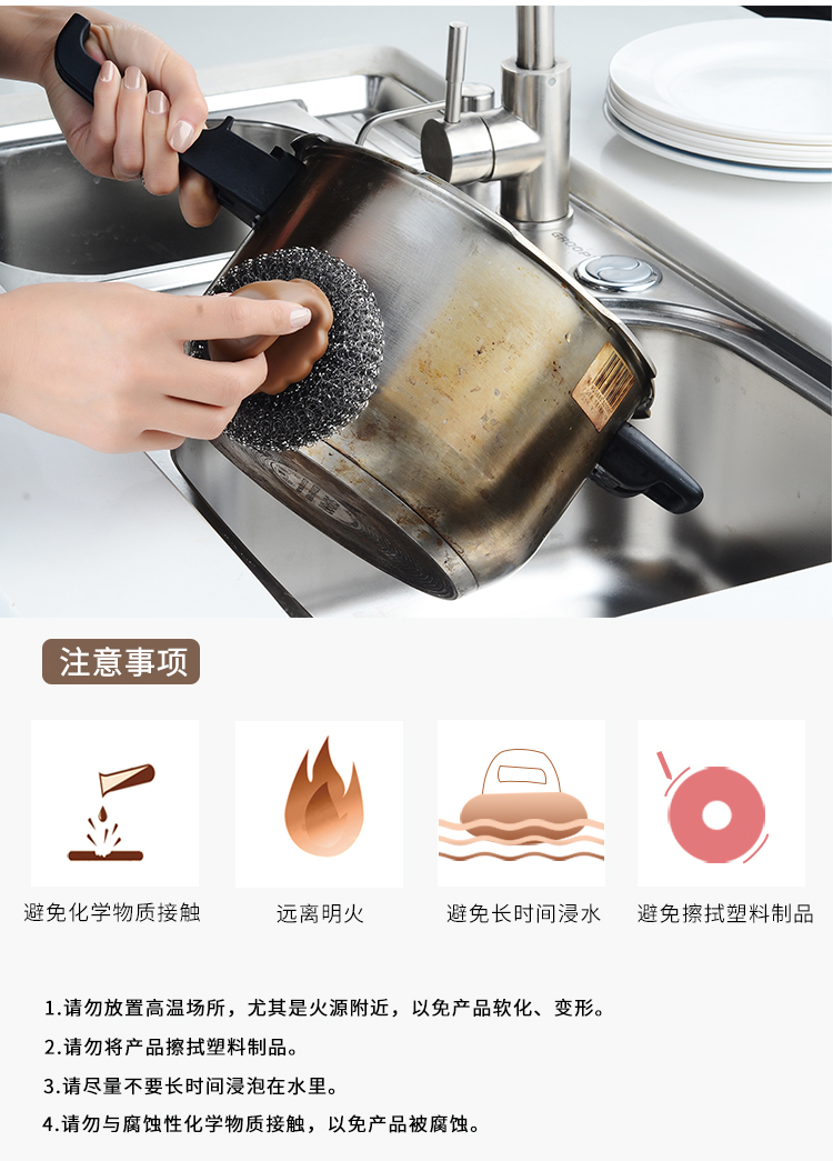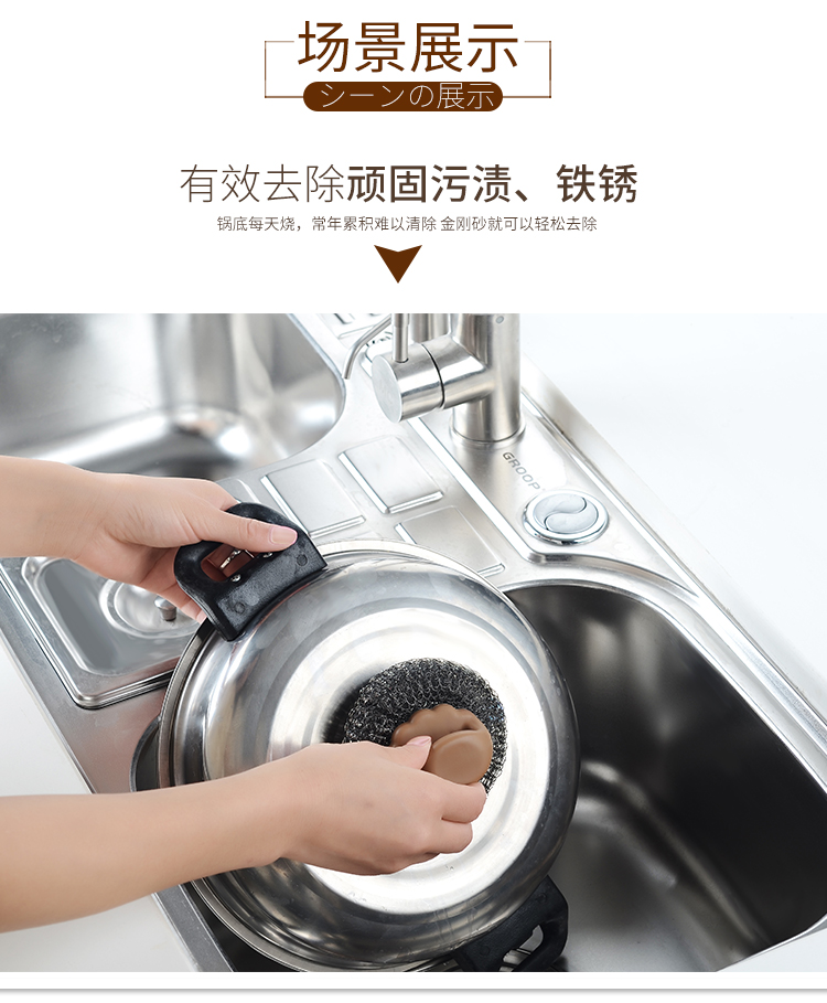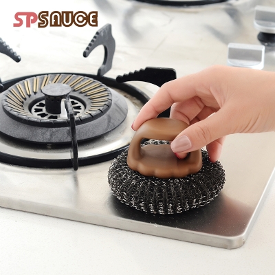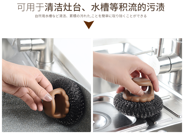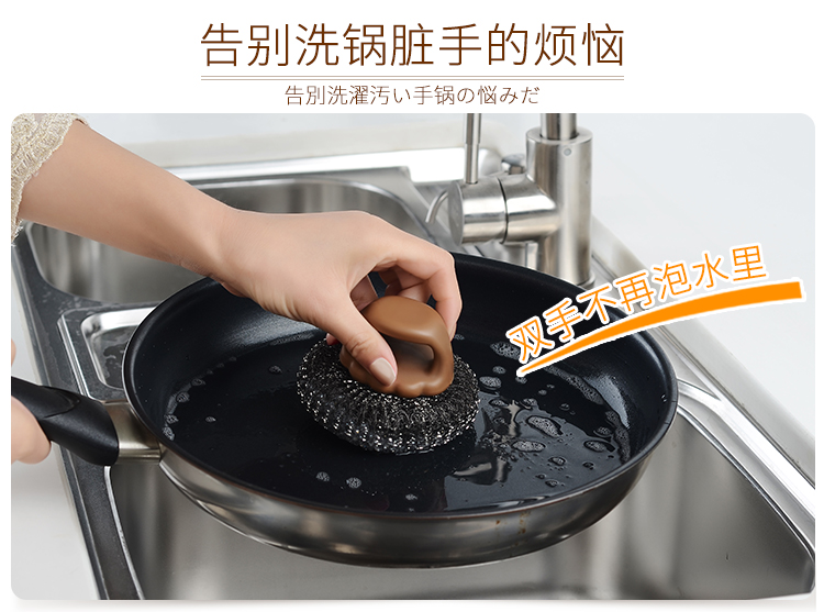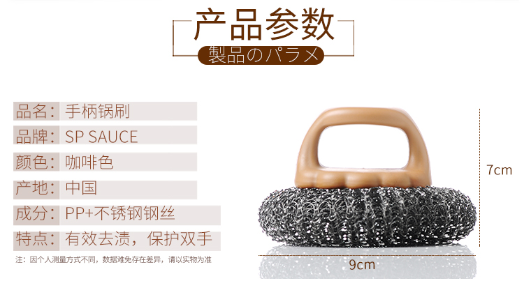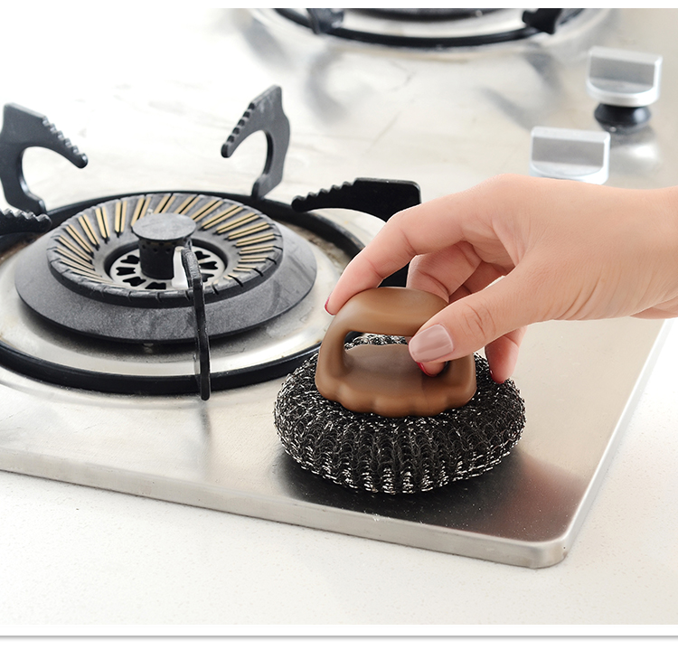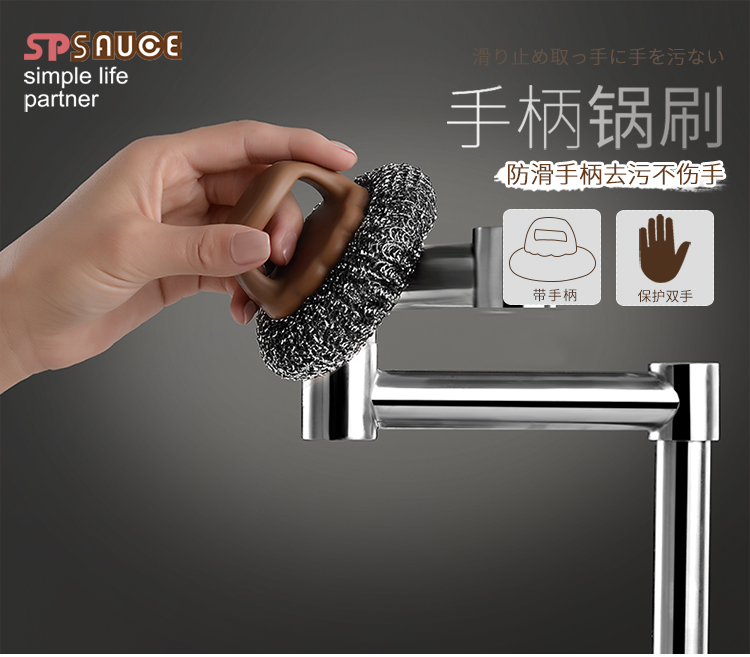 D 手柄锅刷 厨房用刷带手柄清洁刷钢丝球锅刷锅洗碗刷家用不锈钢丝刷子清洁球