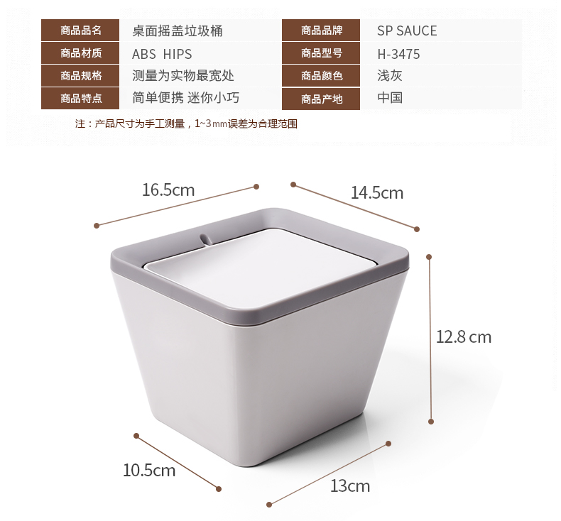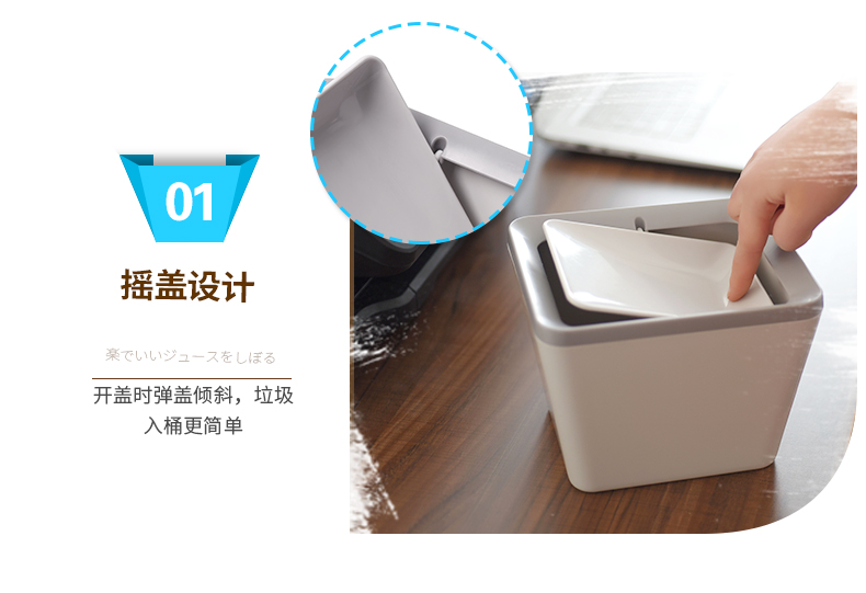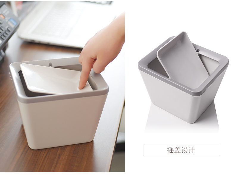 D 桌面摇盖垃圾桶 桌面垃圾桶汽车废纸篓迷你小垃圾桶时尚创意客厅卧室办公室用简约垃圾桶