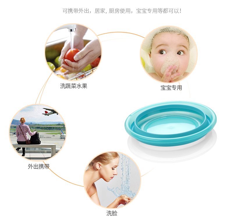 D 可折叠水盆 可悬挂 大号 伸缩可折叠脸盆便携式压缩盆洗脸盘硅胶旅行超轻家用水盆
