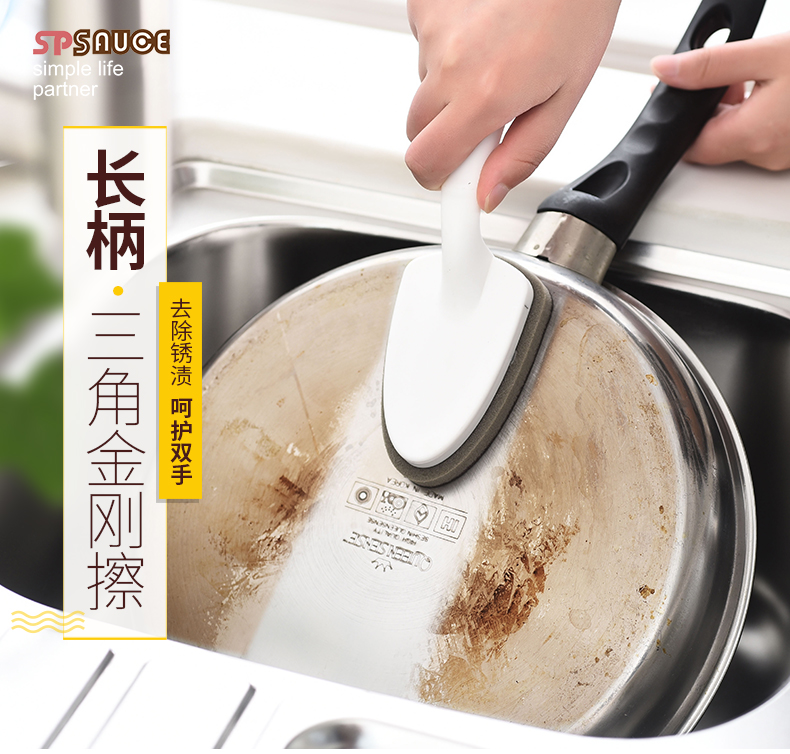D 三角金刚擦 带手柄金刚砂魔力擦除铁锈厨房清洁洗锅刷三角金刚擦去污神器