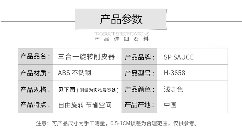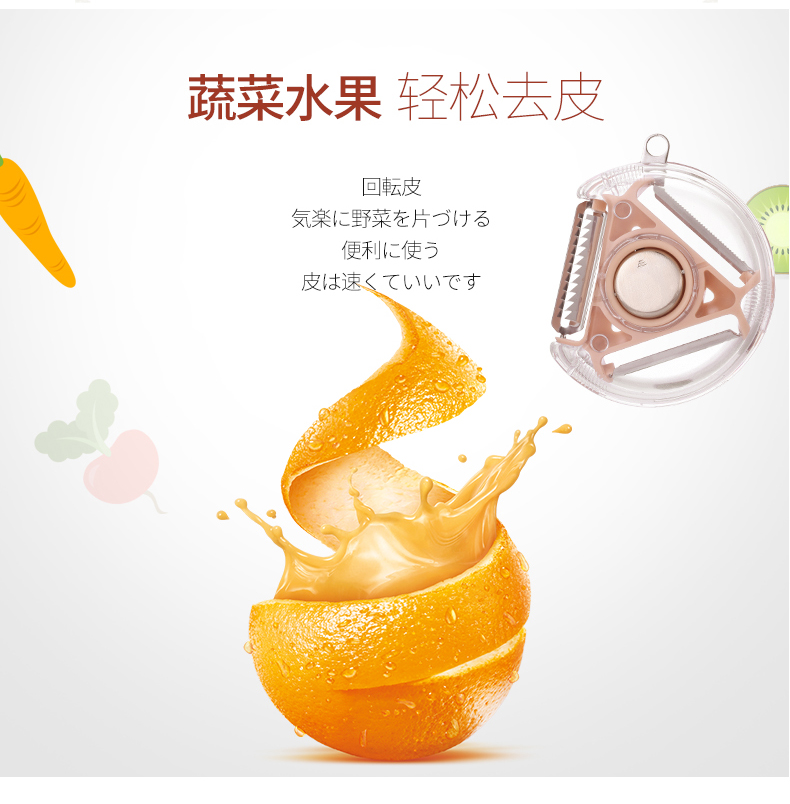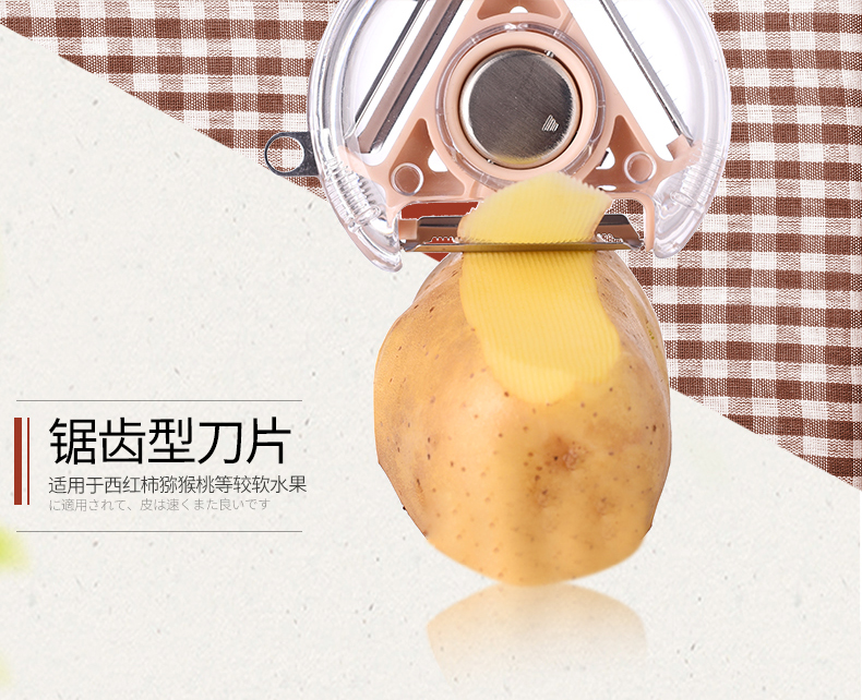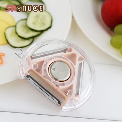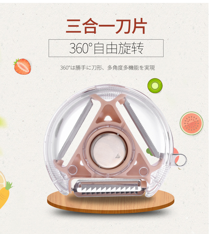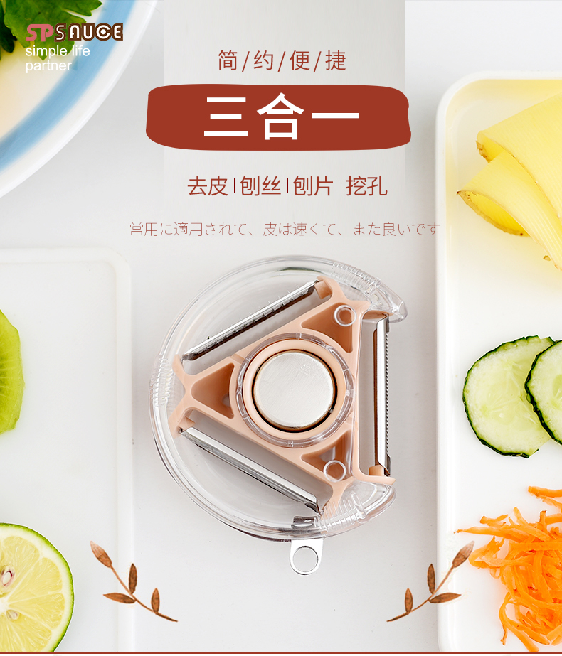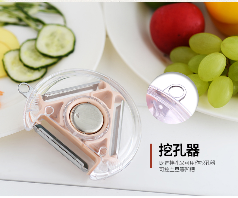 D 三合一圆形旋转削皮器 多功能旋转削皮刀刨丝器土豆丝苹果削水果刨子刮皮神器