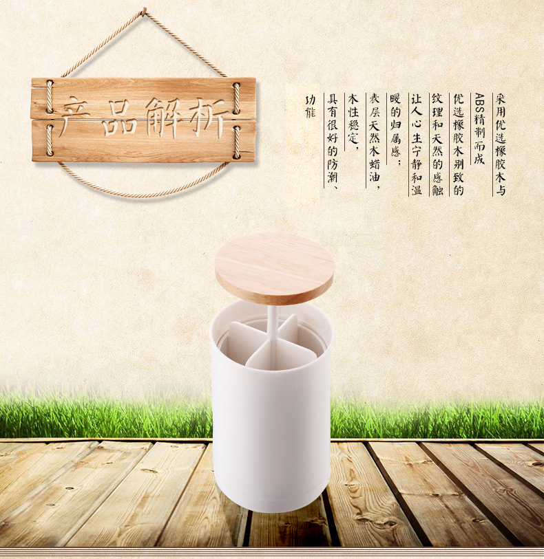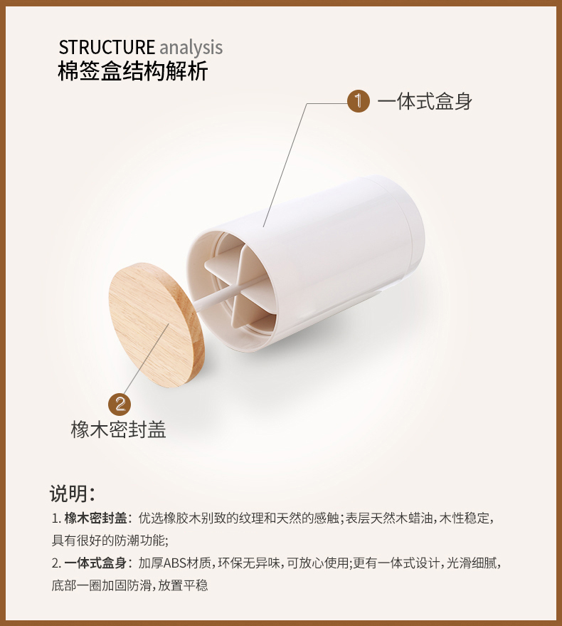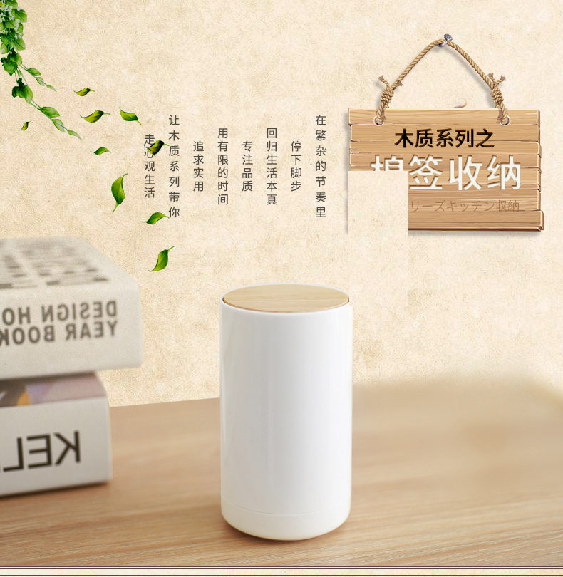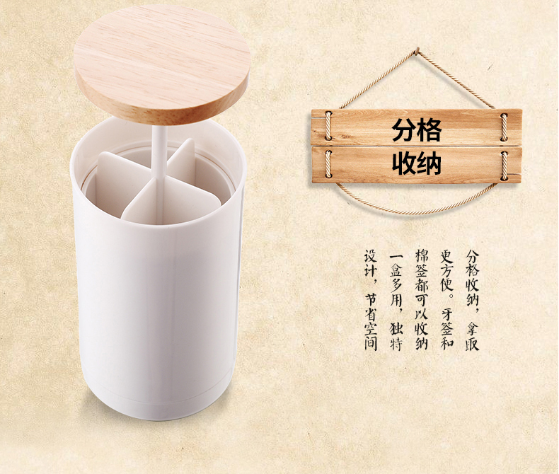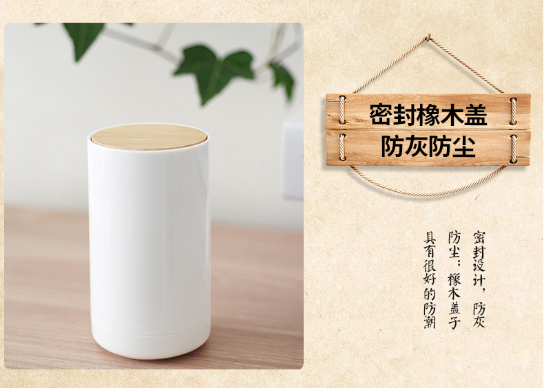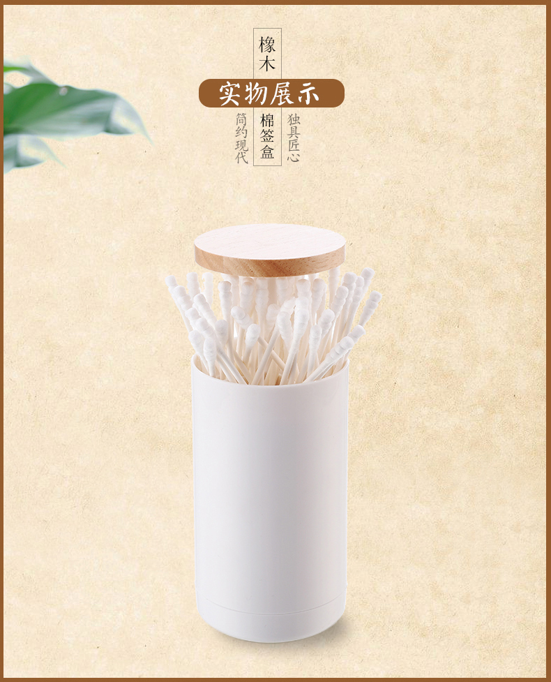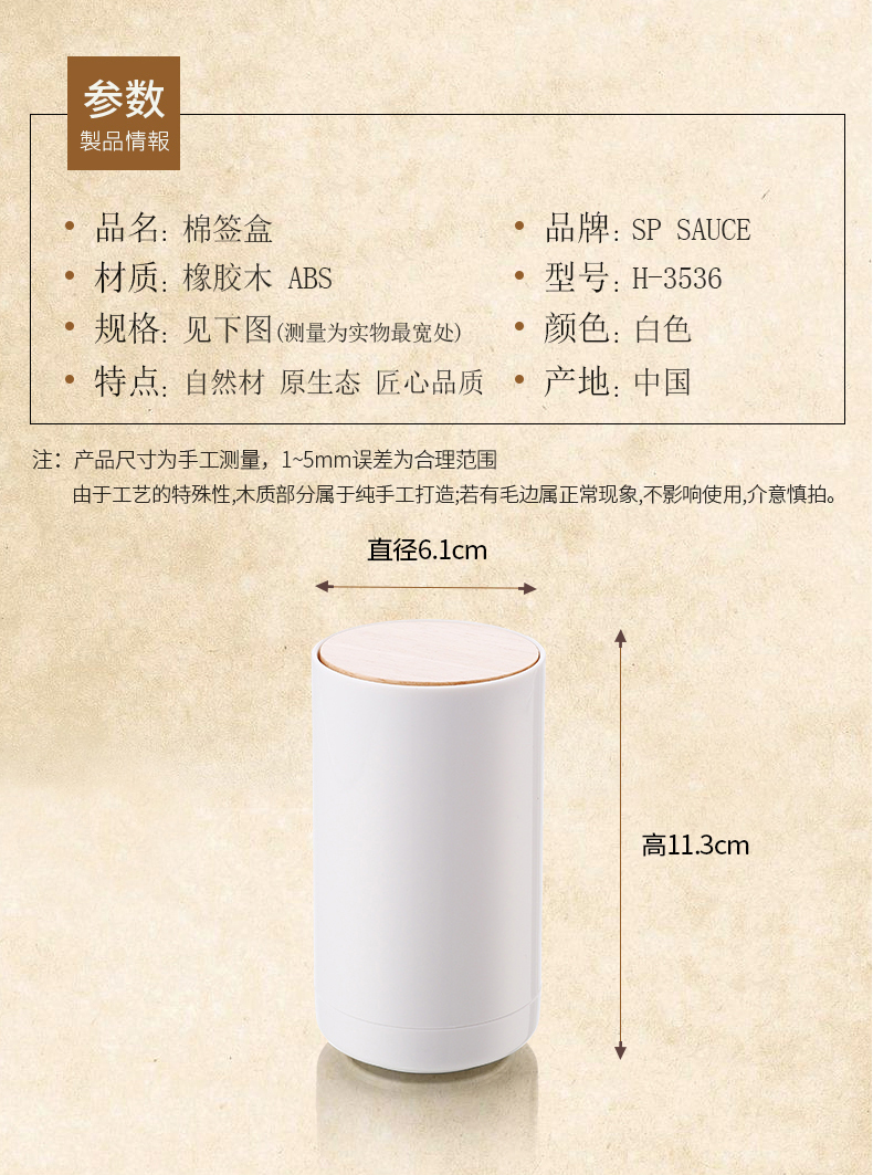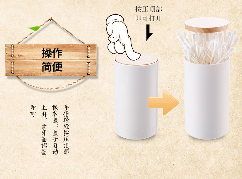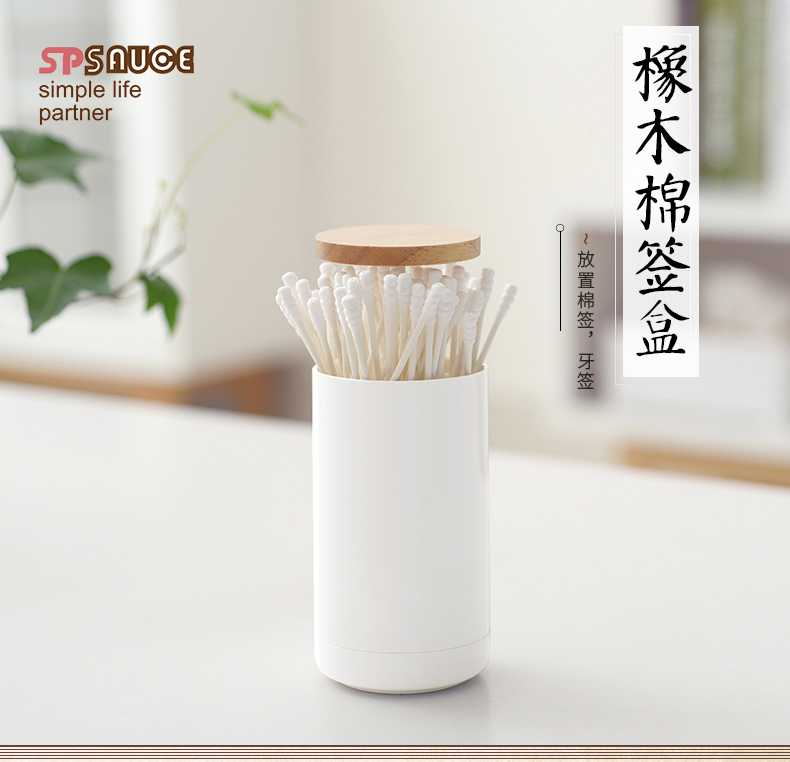 D 棉签盒 SP SAUCE简约橡木盖棉签牙签盒自动按压式便携棉签筒家居收纳