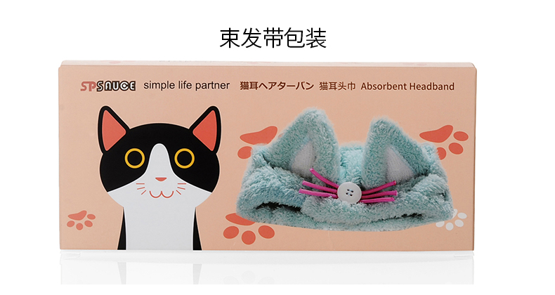 D猫耳朵干发帽 干发帽女速干束发带洗脸可爱卡通猫耳朵吸水快干发帽包头巾