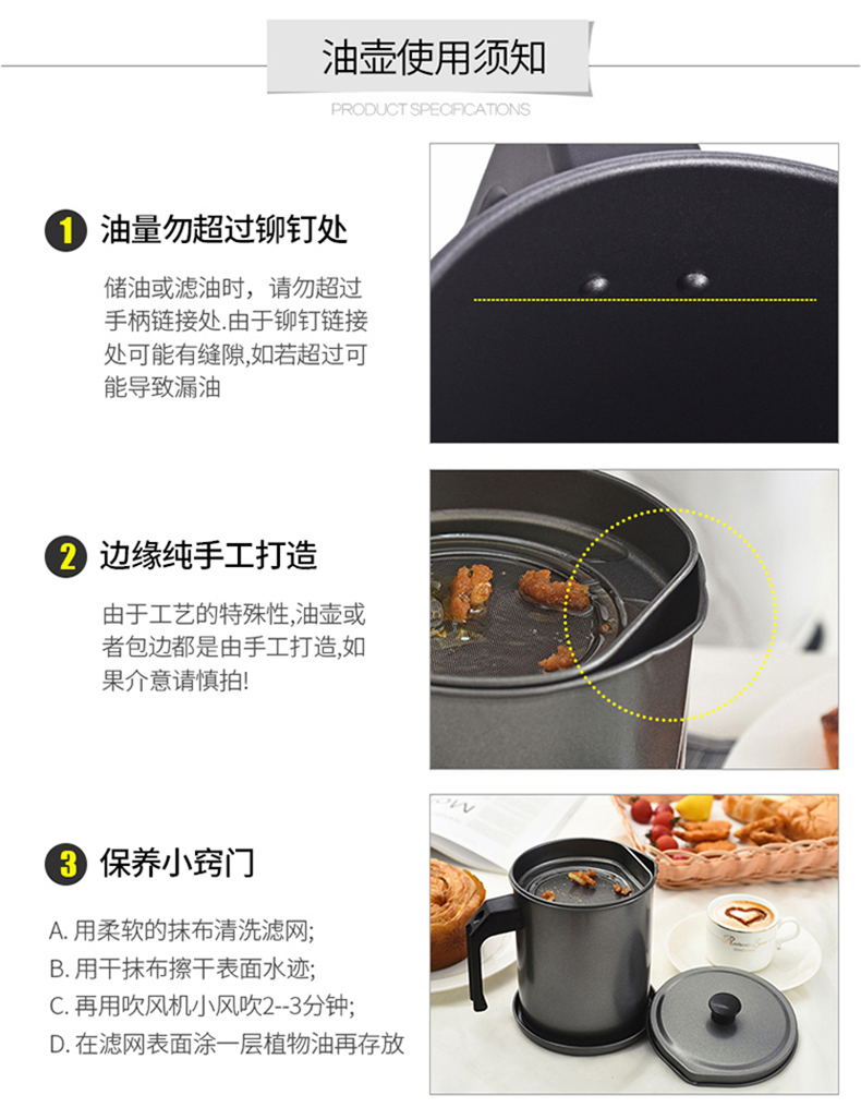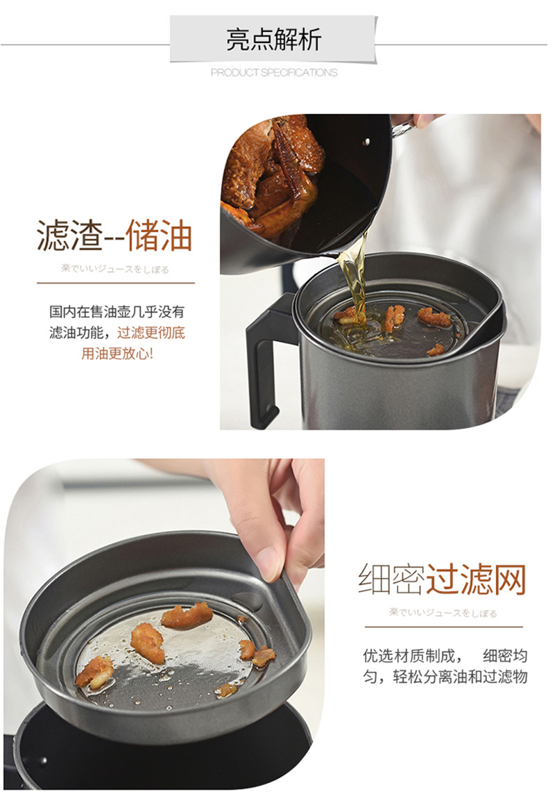 D 过滤油壶1.6L 不锈钢油壶大容量过滤油渣储油罐 厨房家用防漏油瓶