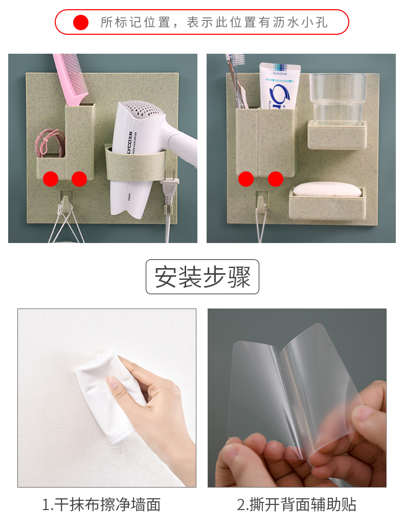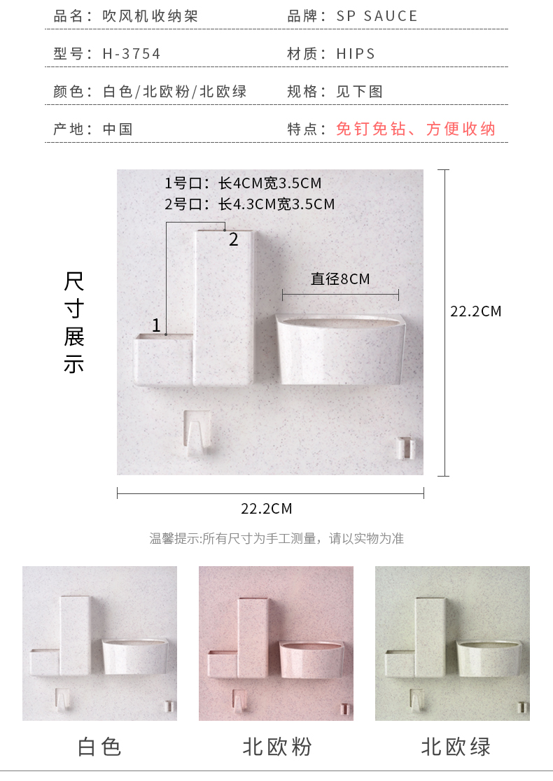 吹风机架(升级版) 吹风机架免打孔卫生间浴室风筒收纳置物架洗漱台洗手间电吹风壁挂
