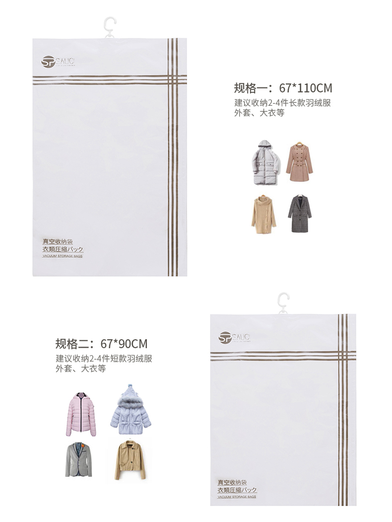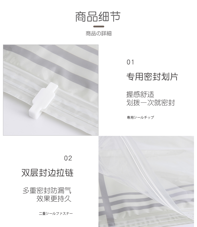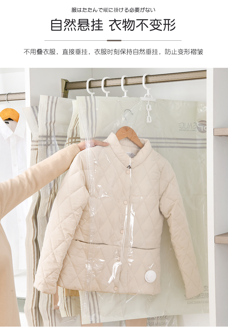 D 带挂钩真空收纳袋 大号 110cm*67cm 太力真空压缩袋免抽气收纳袋子家用小号衣物棉被子整理衣服真空袋