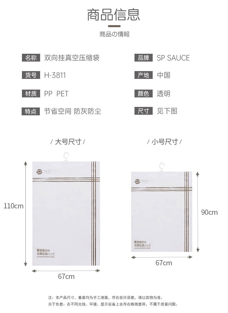 带挂钩真空收纳袋 小号90cm*67cm 抽真空压缩袋收纳袋整理袋棉被被子衣物羽绒服家用装衣服袋子