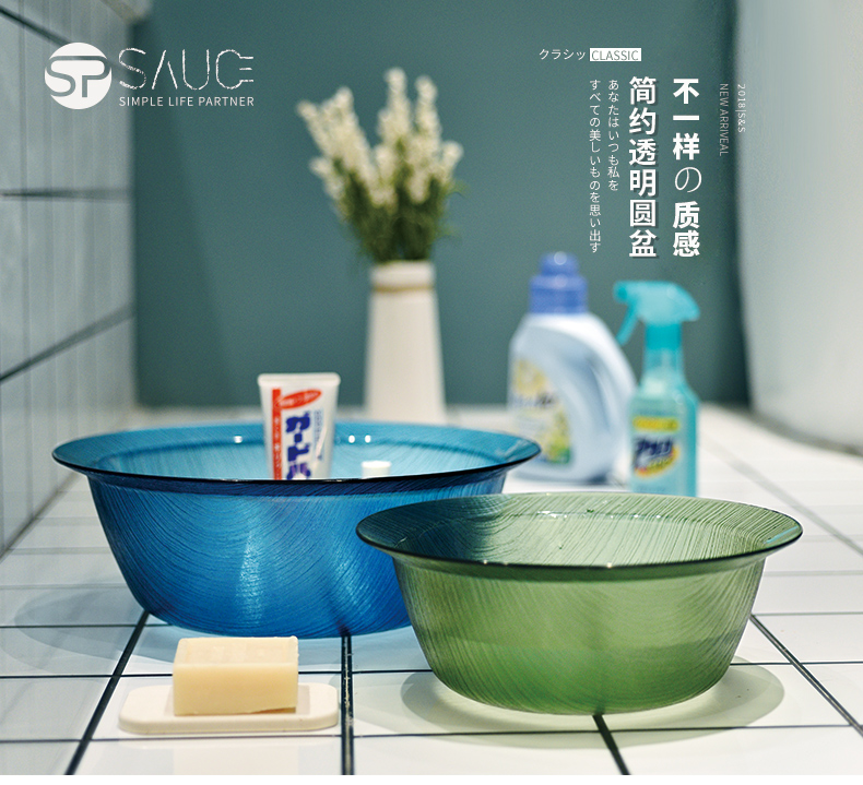 简约透明圆盆 中号 洗漱盆塑料脸盆家用中号加厚成人洗衣服盆学生宿舍洗脸盆子洗脚盆