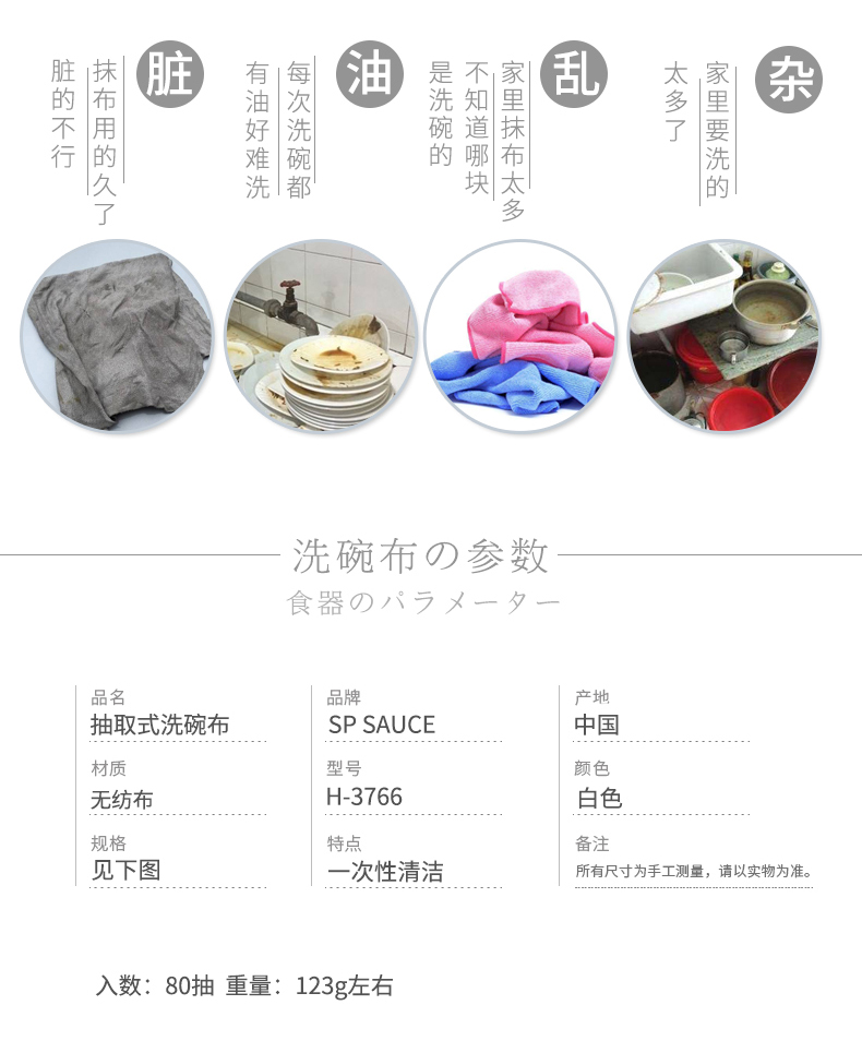 D 抽取式洗碗布80入 抽取式环保无纺布抹布80片 厨房多用清洁布洗碗布百洁布