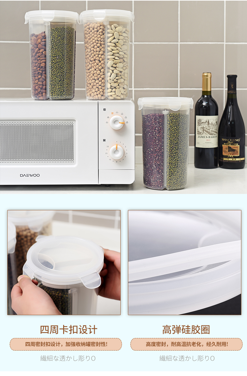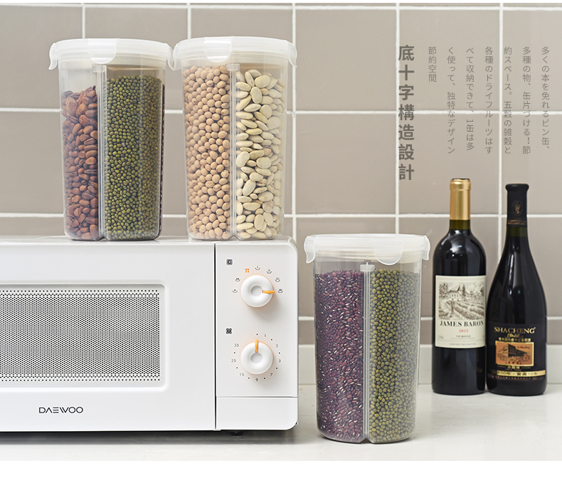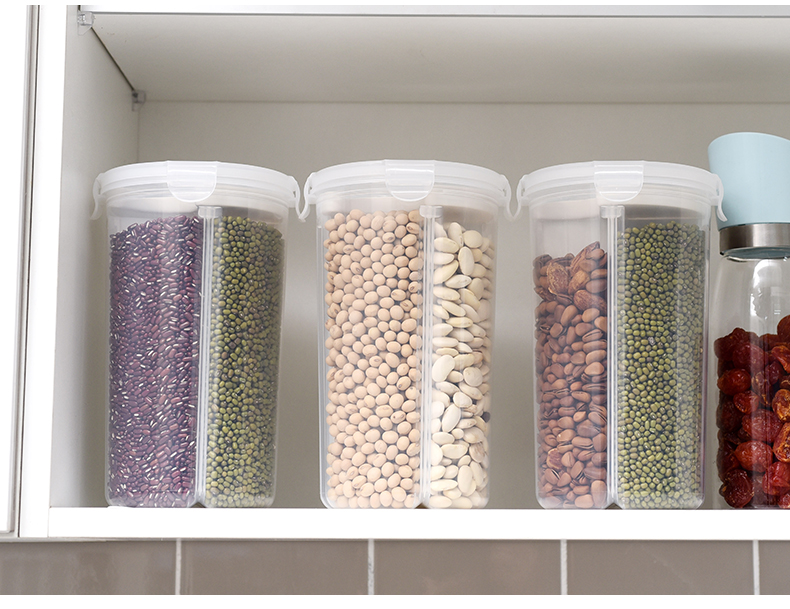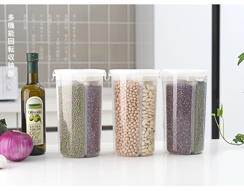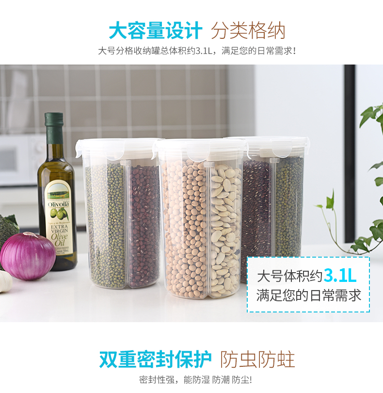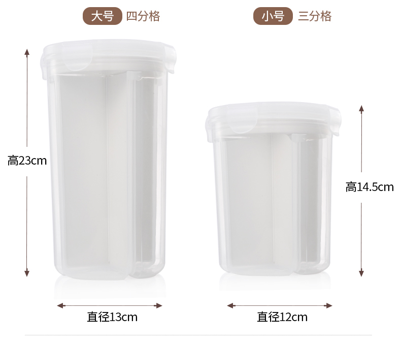 D 分格透明塑料密封罐 小号 日式分格透明塑料五谷杂粮密封罐多功能食品保鲜盒厨房冰箱收纳罐