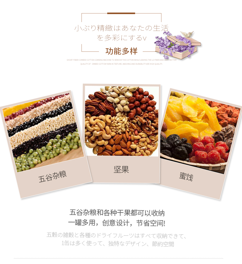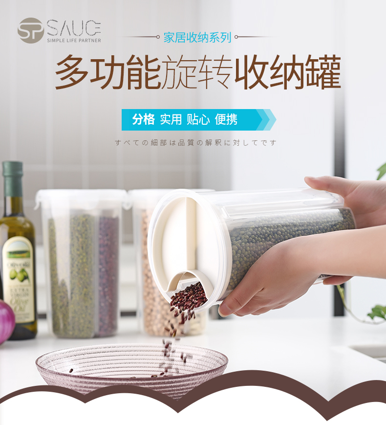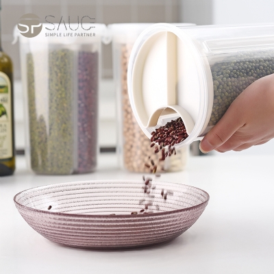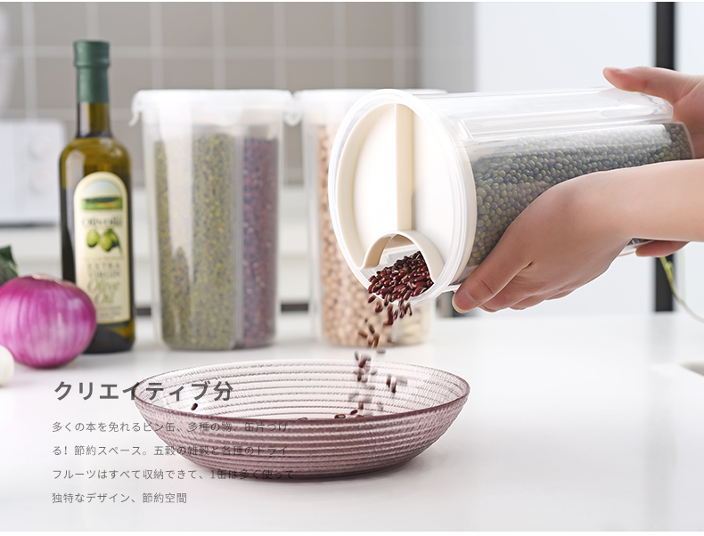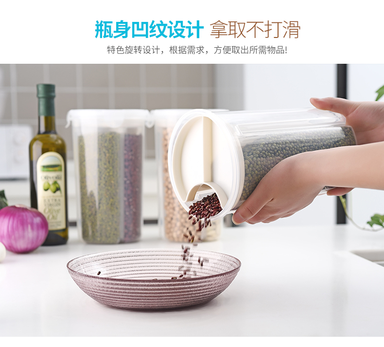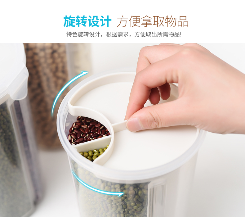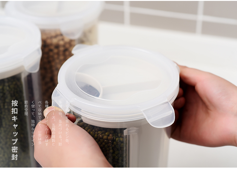 D 分格透明塑料密封罐 小号 日式分格透明塑料五谷杂粮密封罐多功能食品保鲜盒厨房冰箱收纳罐