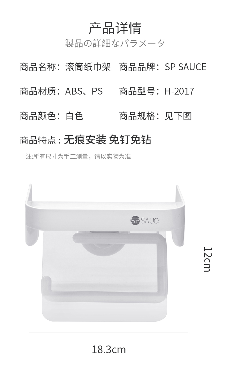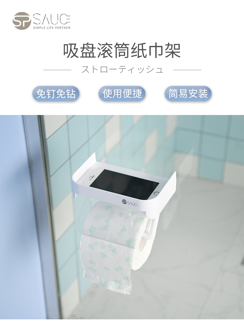 D 吸盘滚筒纸巾架 日本厨房纸巾架吸盘无痕壁挂式免打孔卷纸架橱柜倒挂毛巾抹布架