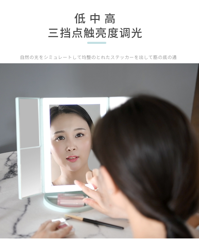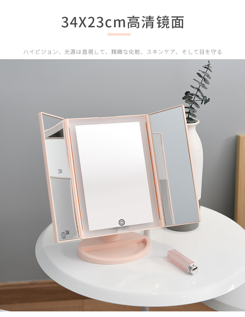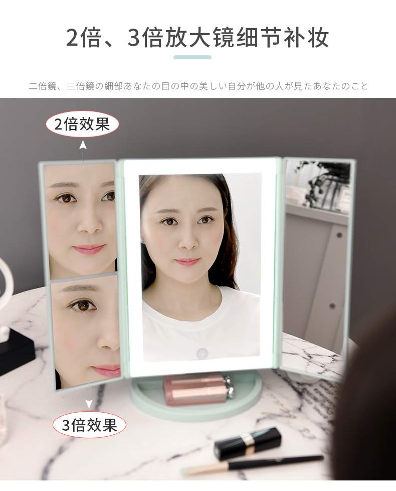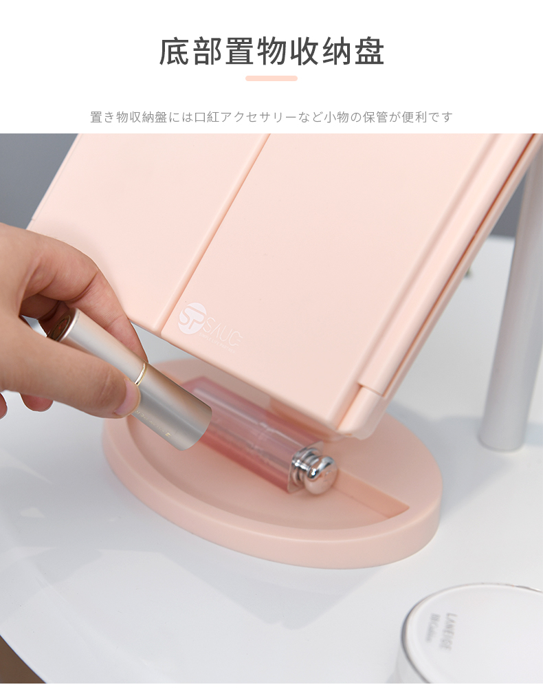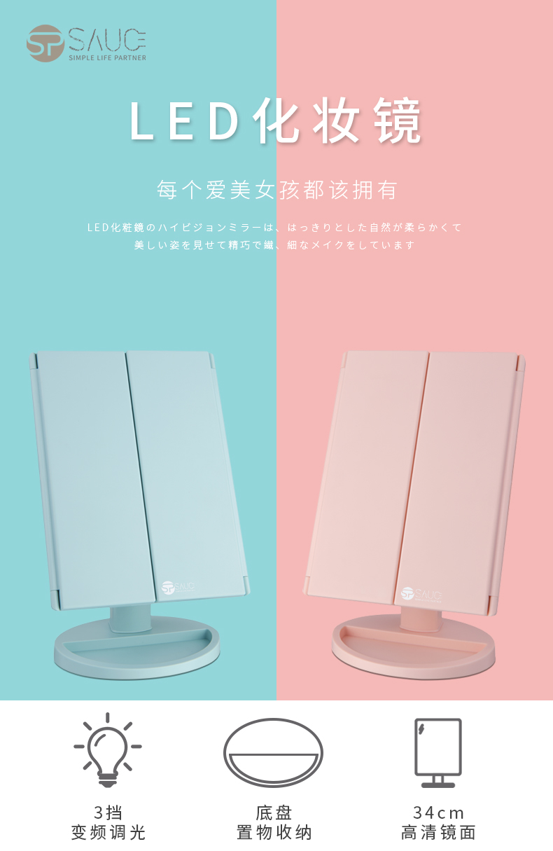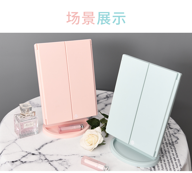 D LED化妆镜 日本SP LED镜子化妆镜桌面梳妆镜公主镜可爱镜台式可折叠镜子便携
