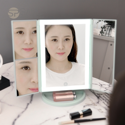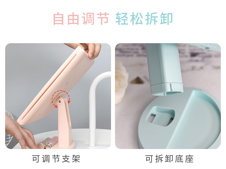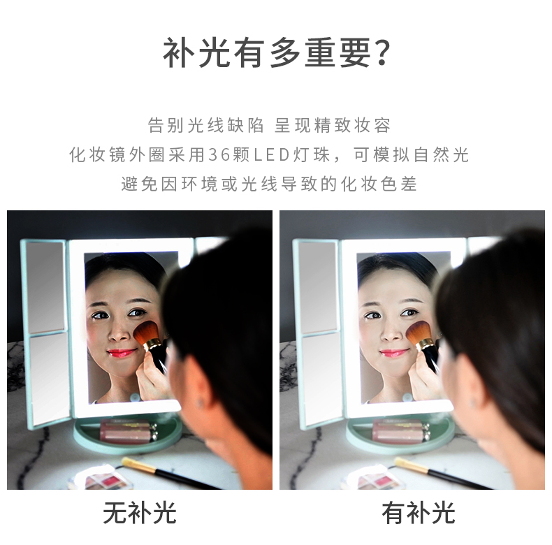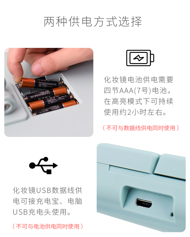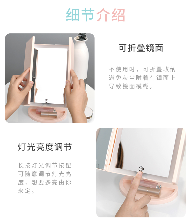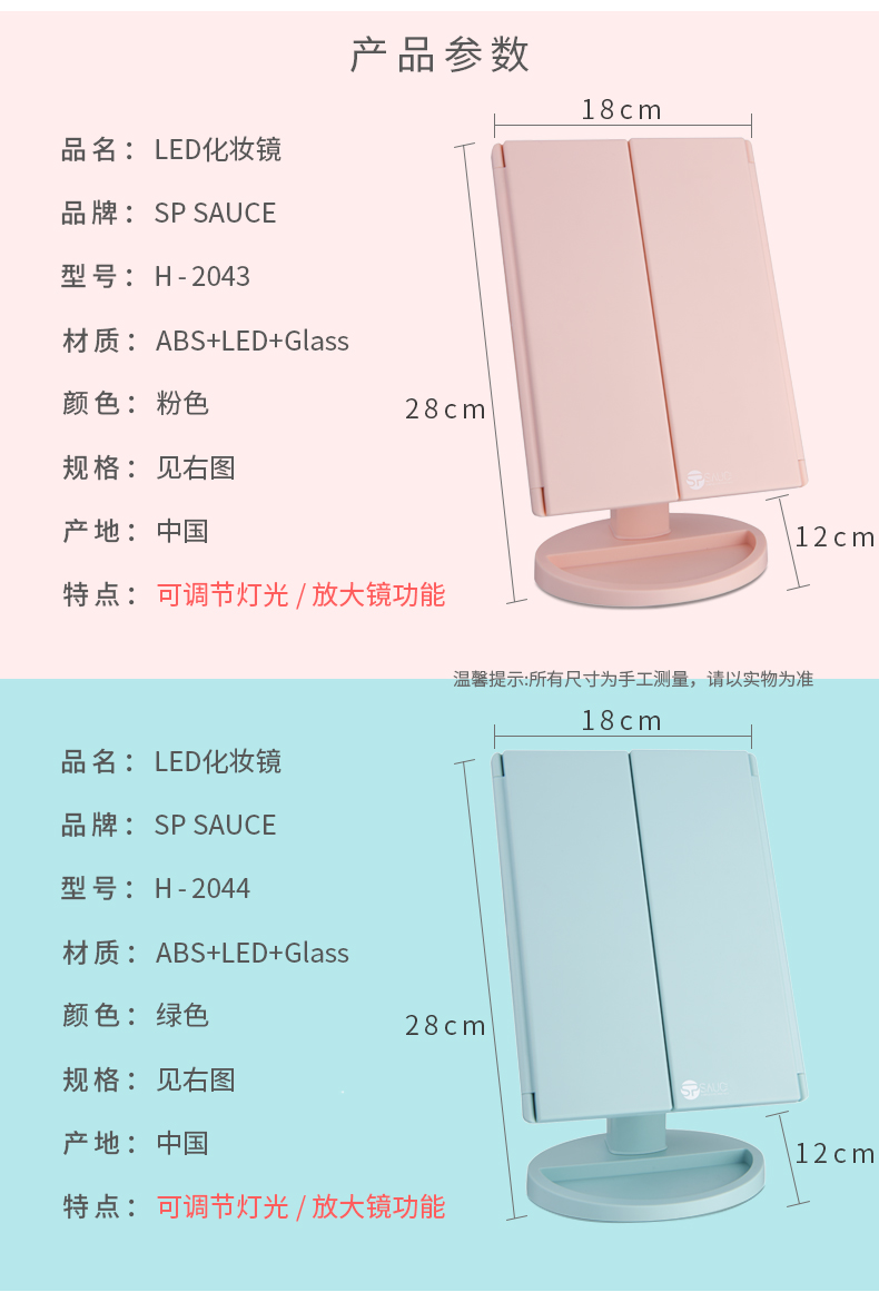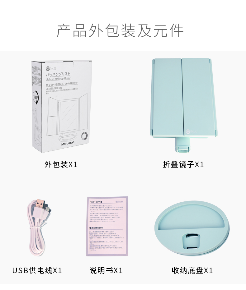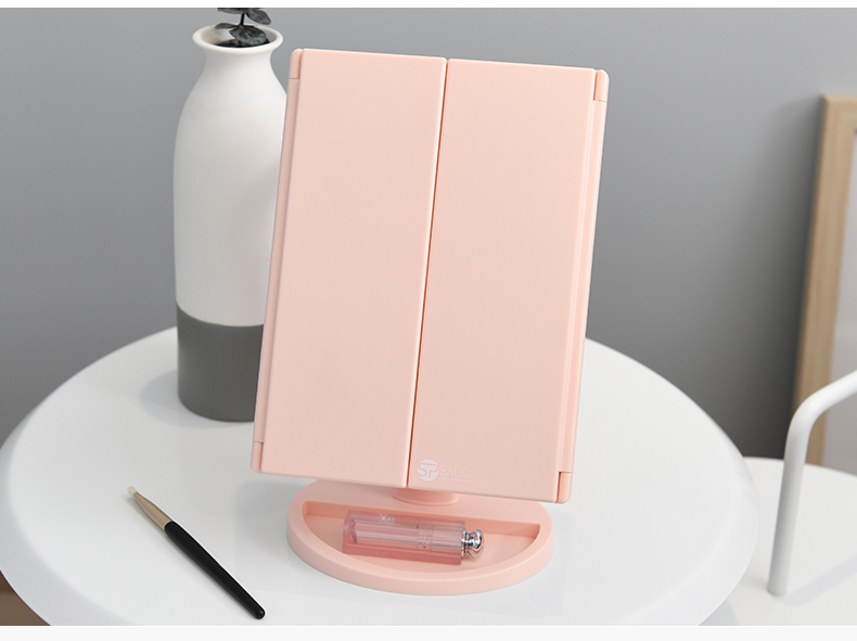 D LED化妆镜 日本SP LED镜子化妆镜桌面梳妆镜公主镜可爱镜台式可折叠镜子便携