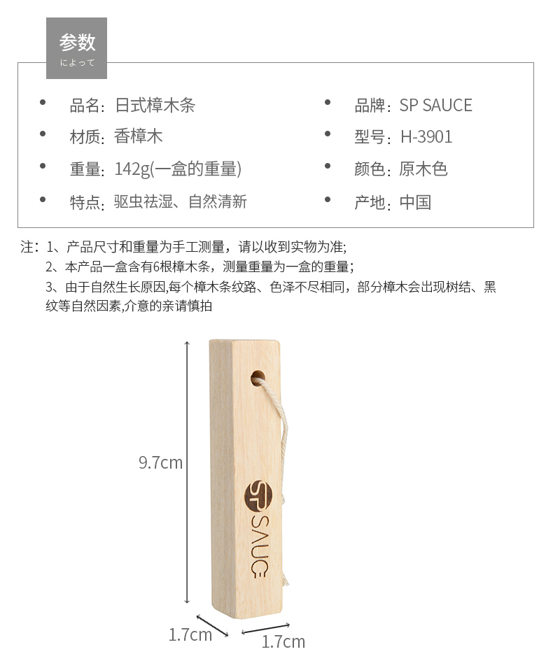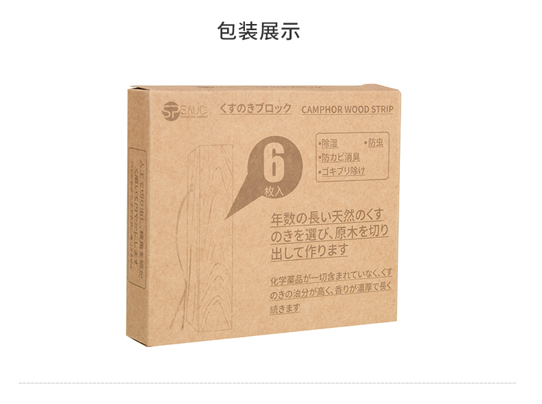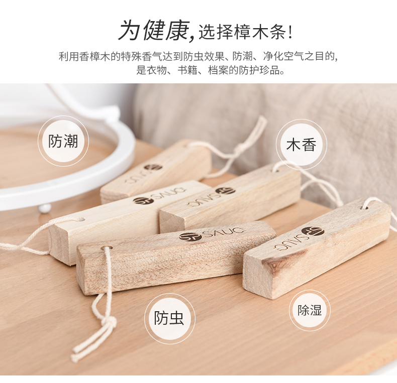 日式樟木条(6条装) 日式樟木条家用衣柜防蟑螂防虫驱虫防潮防霉樟脑丸樟木块