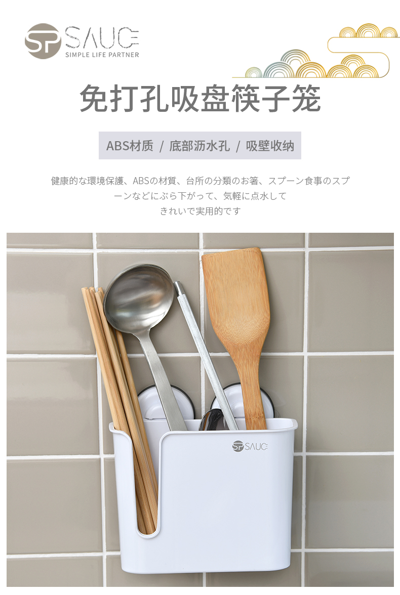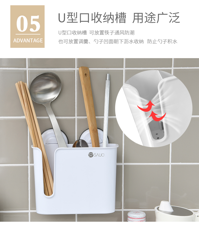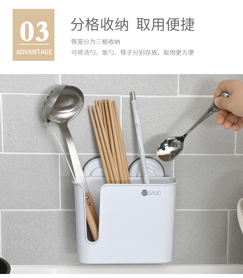 吸盘筷子笼 D 筷子筒创意吸盘沥水筷子筒挂 厨房餐具置物架收纳筷子笼