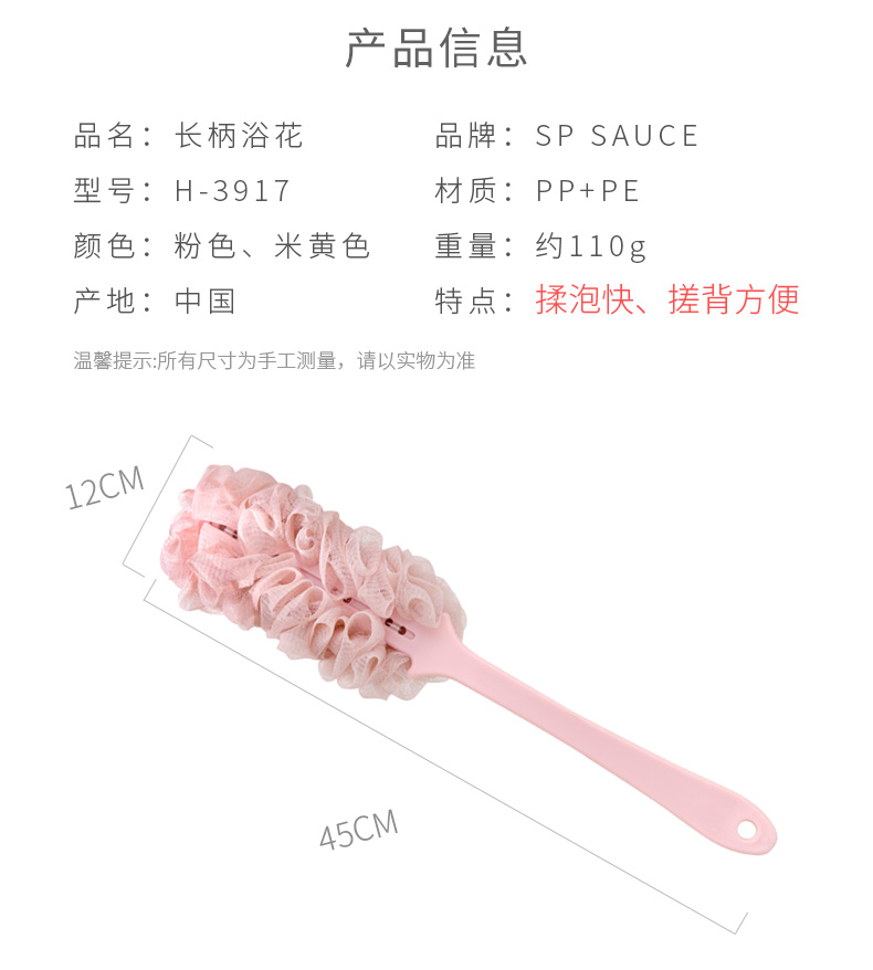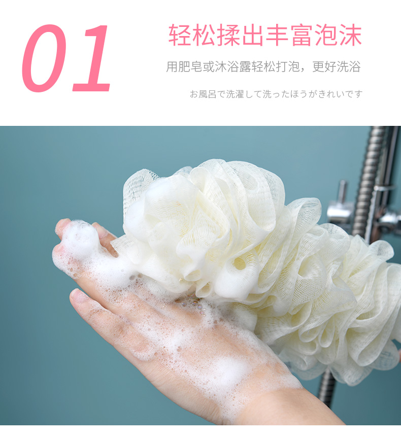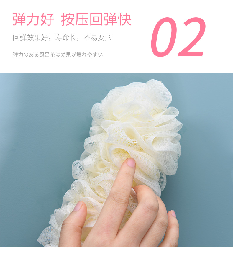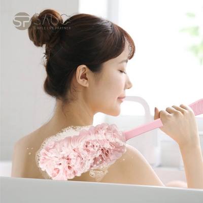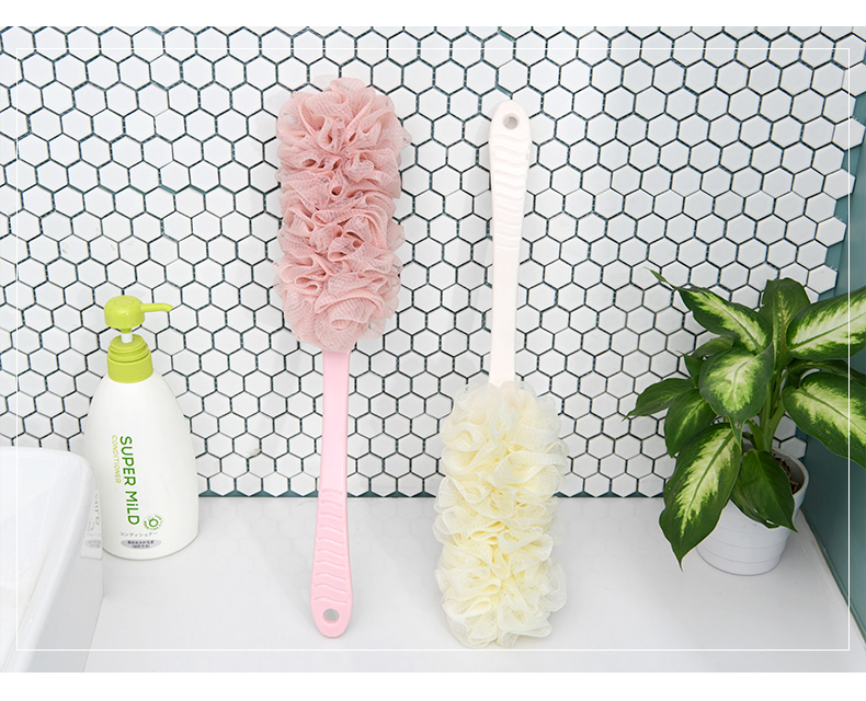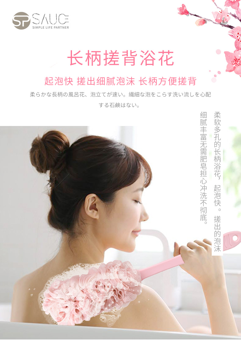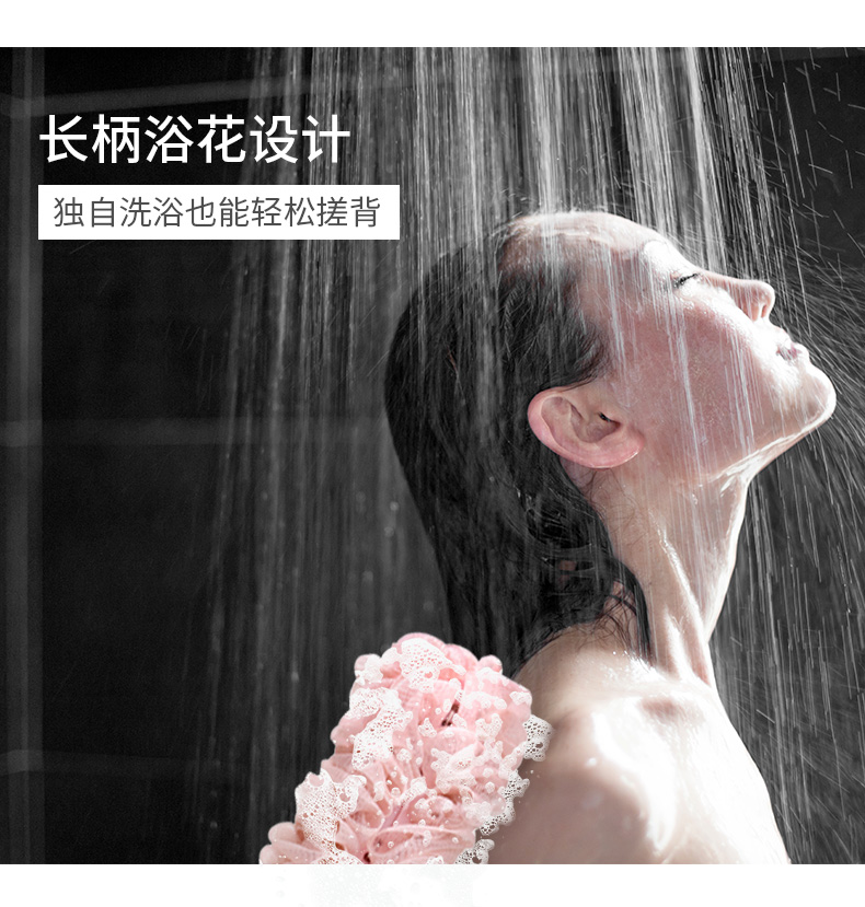 D 长柄浴花 日本长柄浴花刷背部沐浴花球大号成人不散搓澡女加厚搓背洗澡纱网