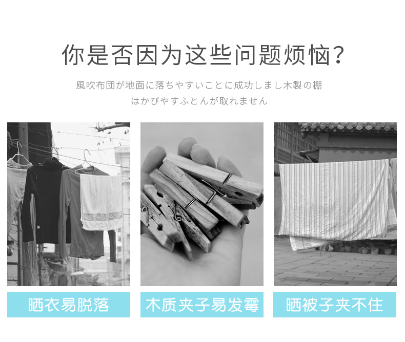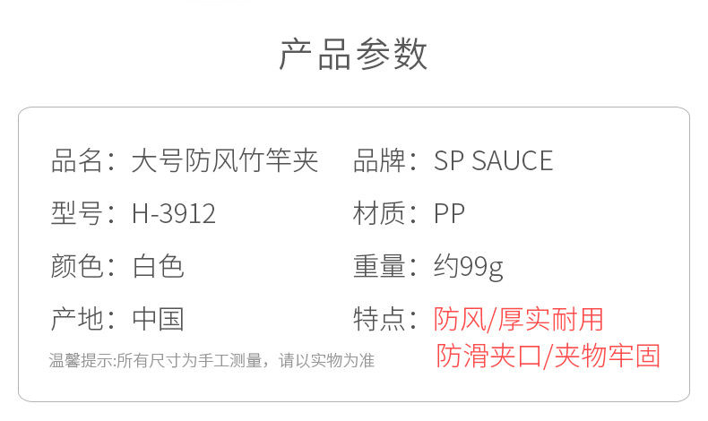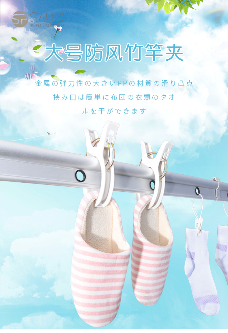 D大号防风竹竿夹 2P 被子晾晒夹大号学校宿舍竹竿蚊帐毛巾枕套通用型多功能防风晾衣夹