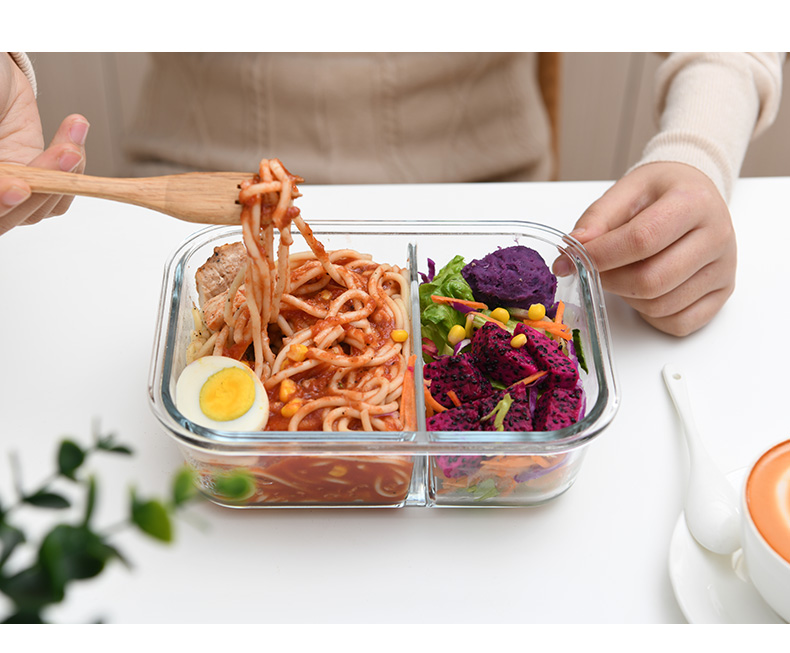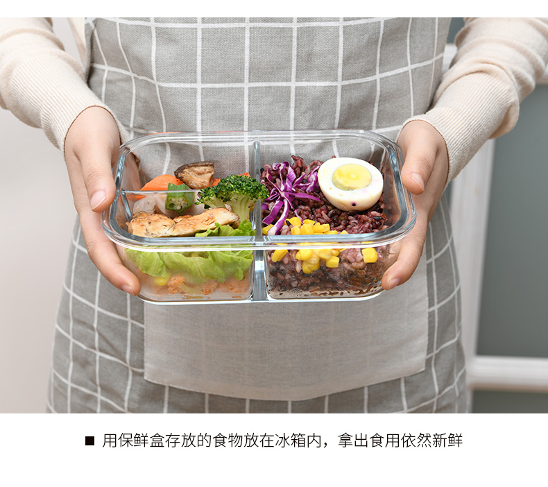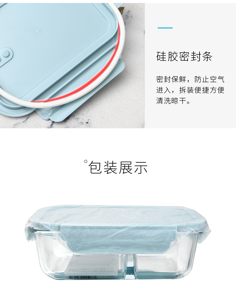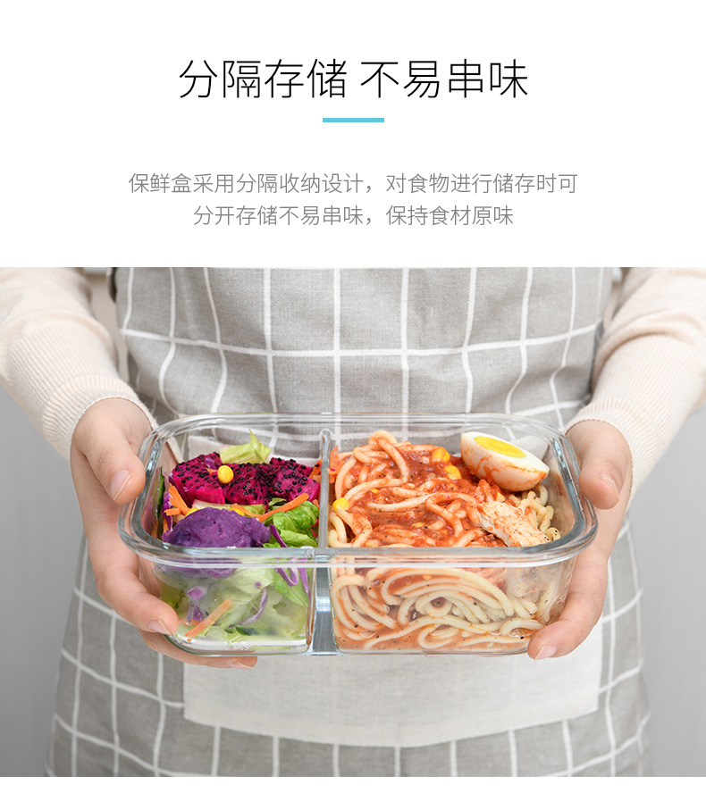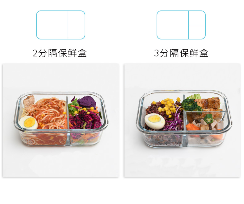 D 2分格玻璃保鲜盒1000ML 玻璃分格饭盒耐热保鲜盒微波炉加热便当盒冰箱收纳盒