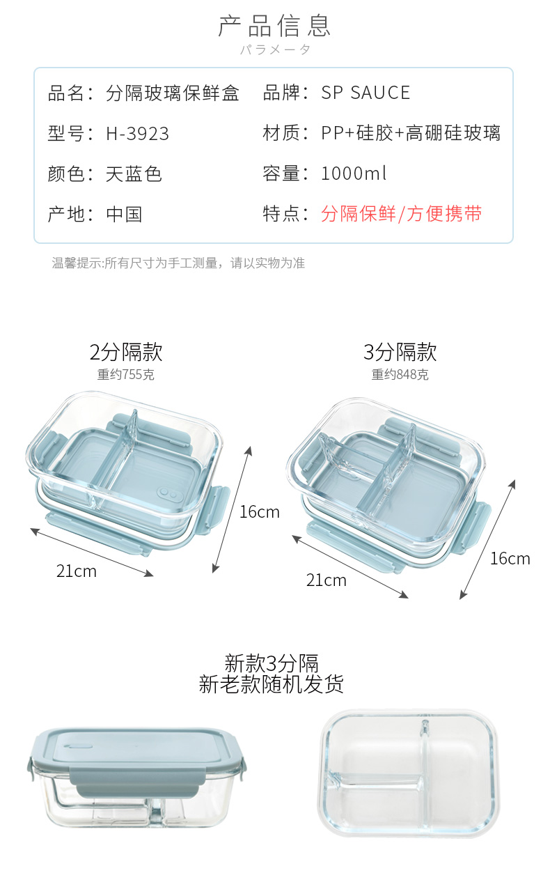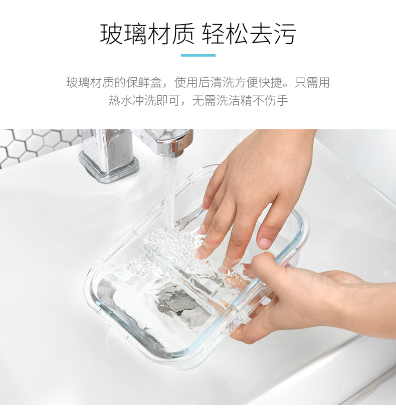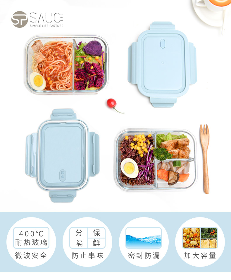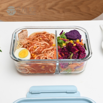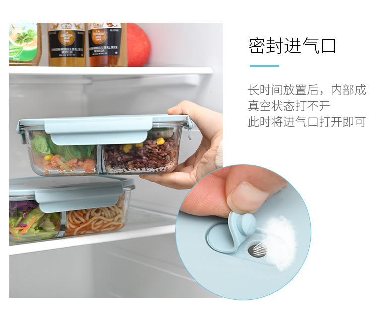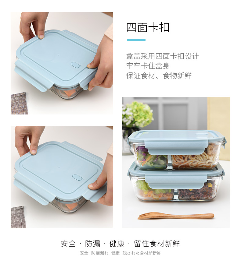 D 2分格玻璃保鲜盒1000ML 玻璃分格饭盒耐热保鲜盒微波炉加热便当盒冰箱收纳盒