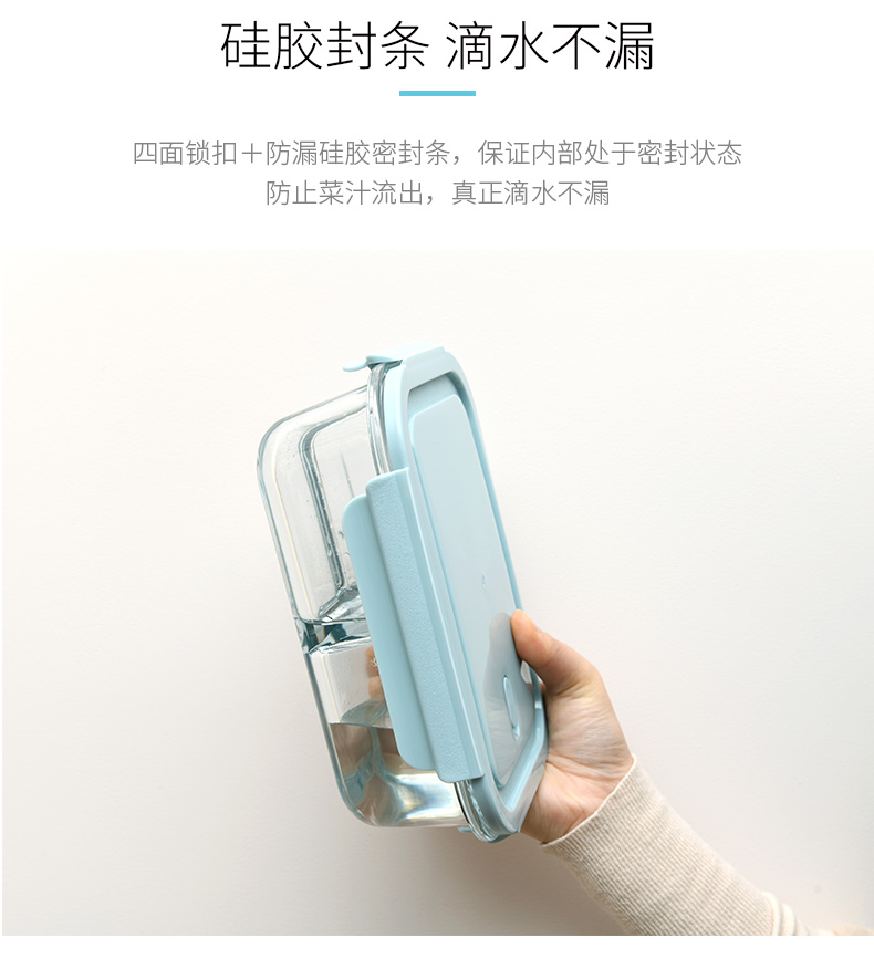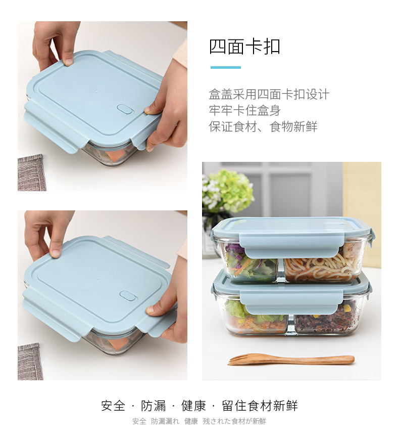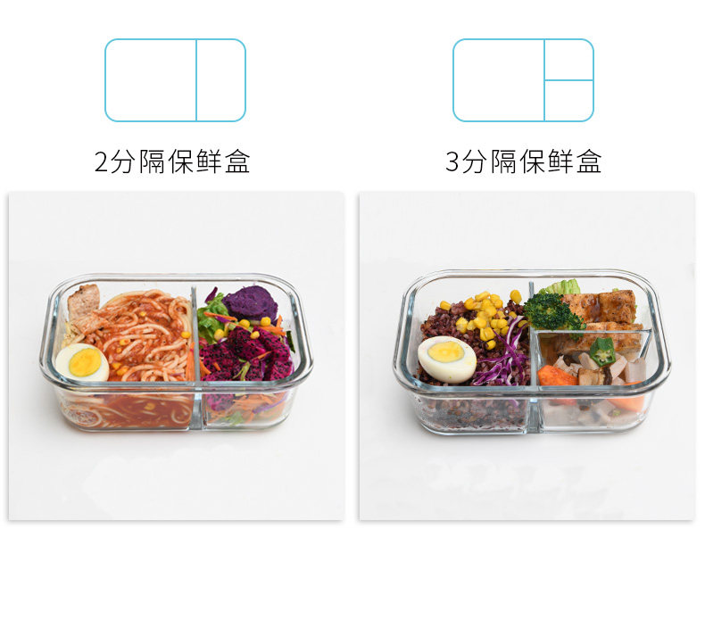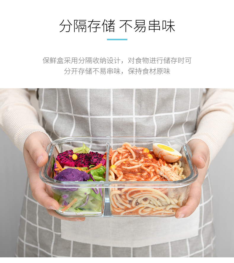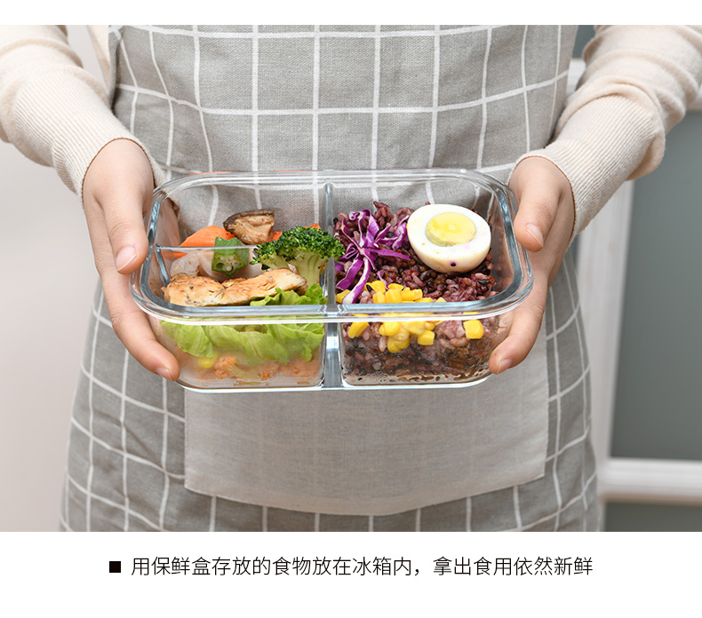 D 3分格玻璃保鲜盒960ML 物生物分隔型微波炉专用玻璃饭盒辅食上班族学生密封便当餐盒保鲜