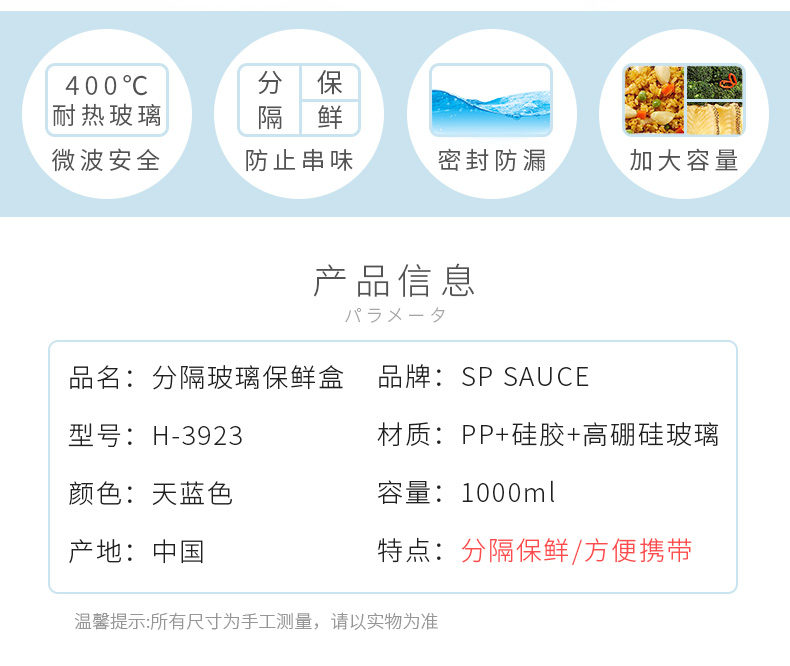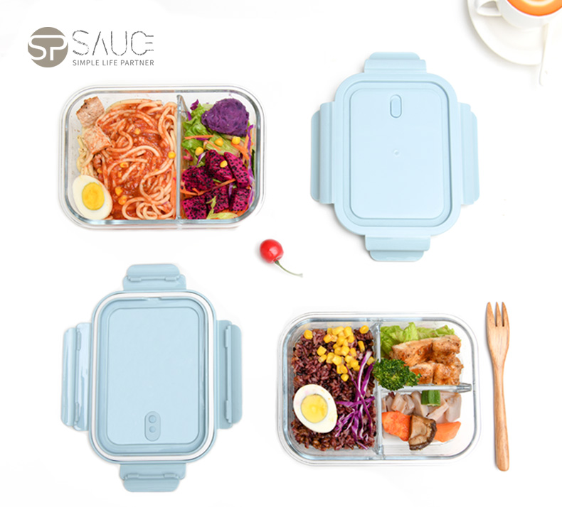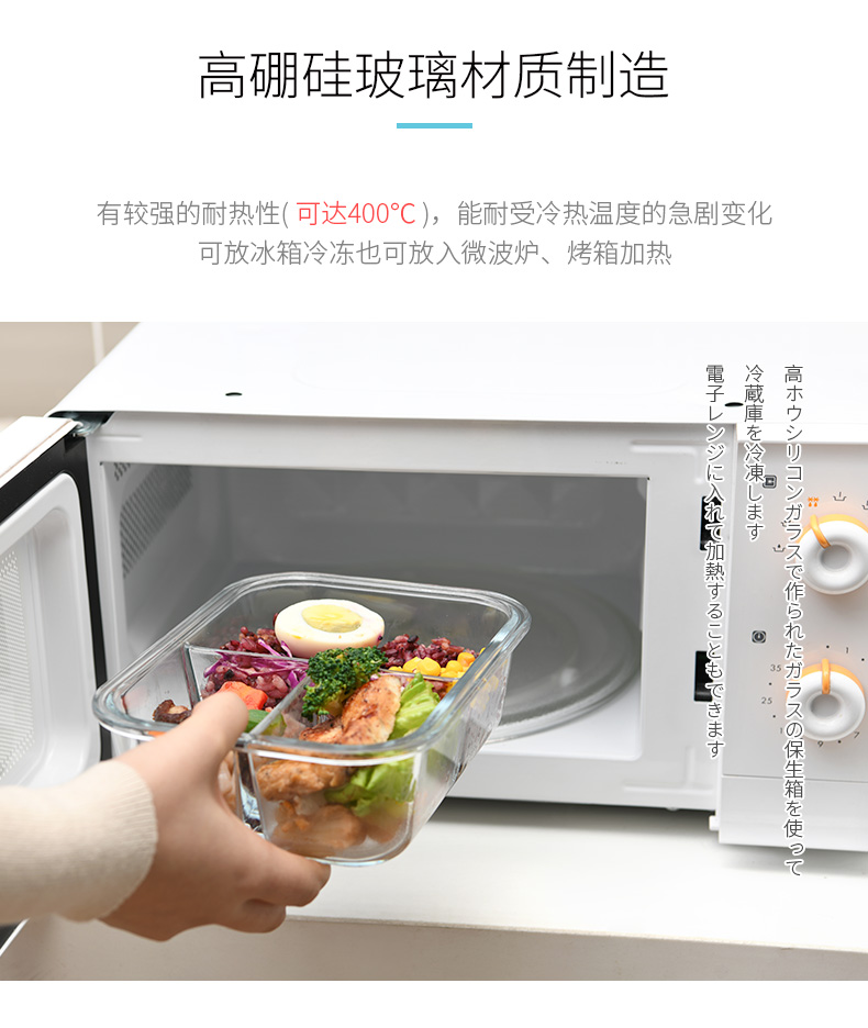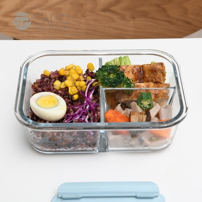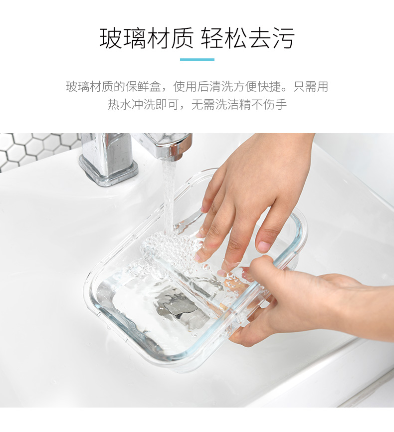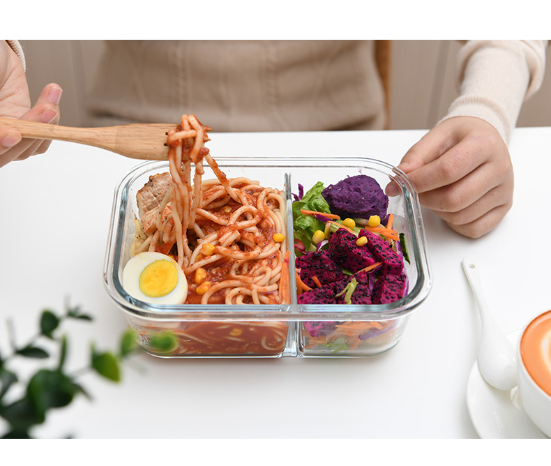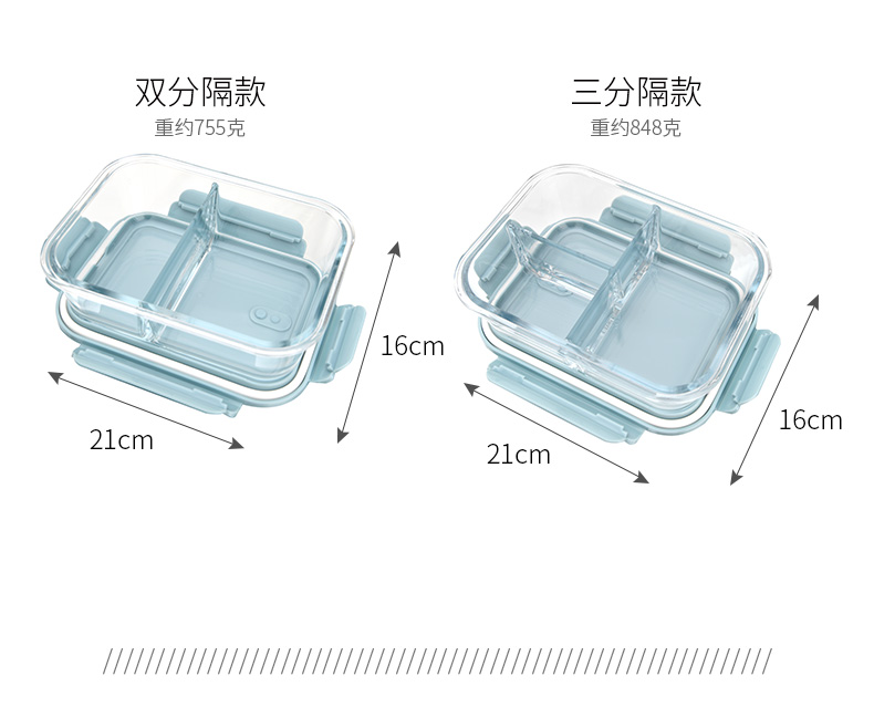 D 3分格玻璃保鲜盒960ML 物生物分隔型微波炉专用玻璃饭盒辅食上班族学生密封便当餐盒保鲜