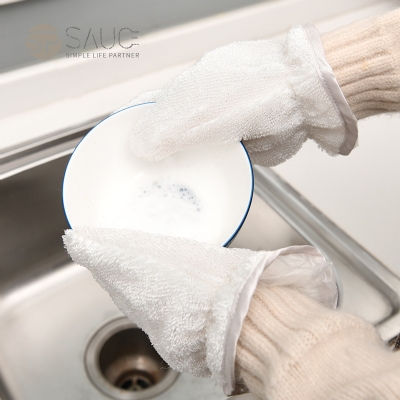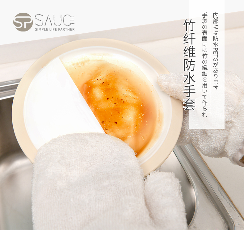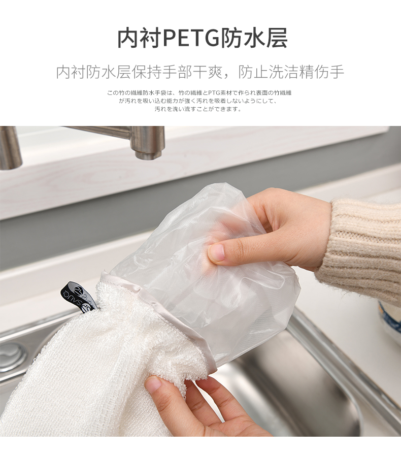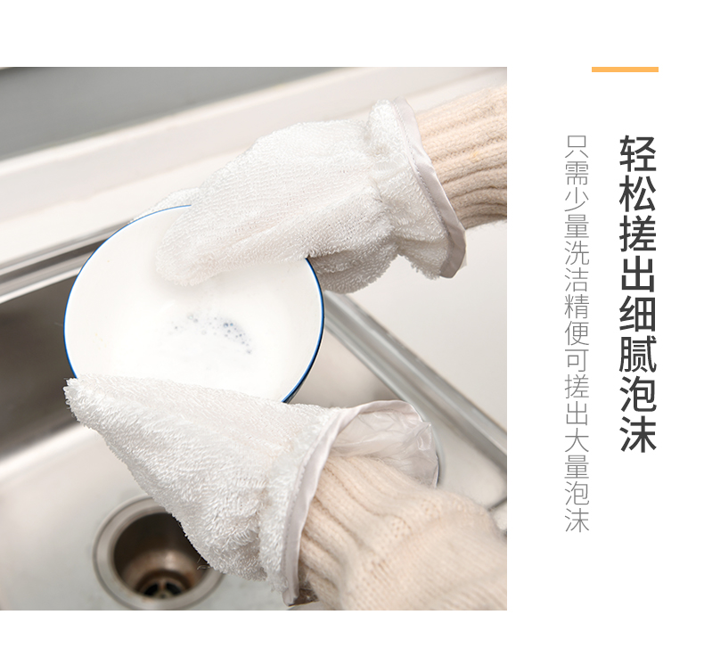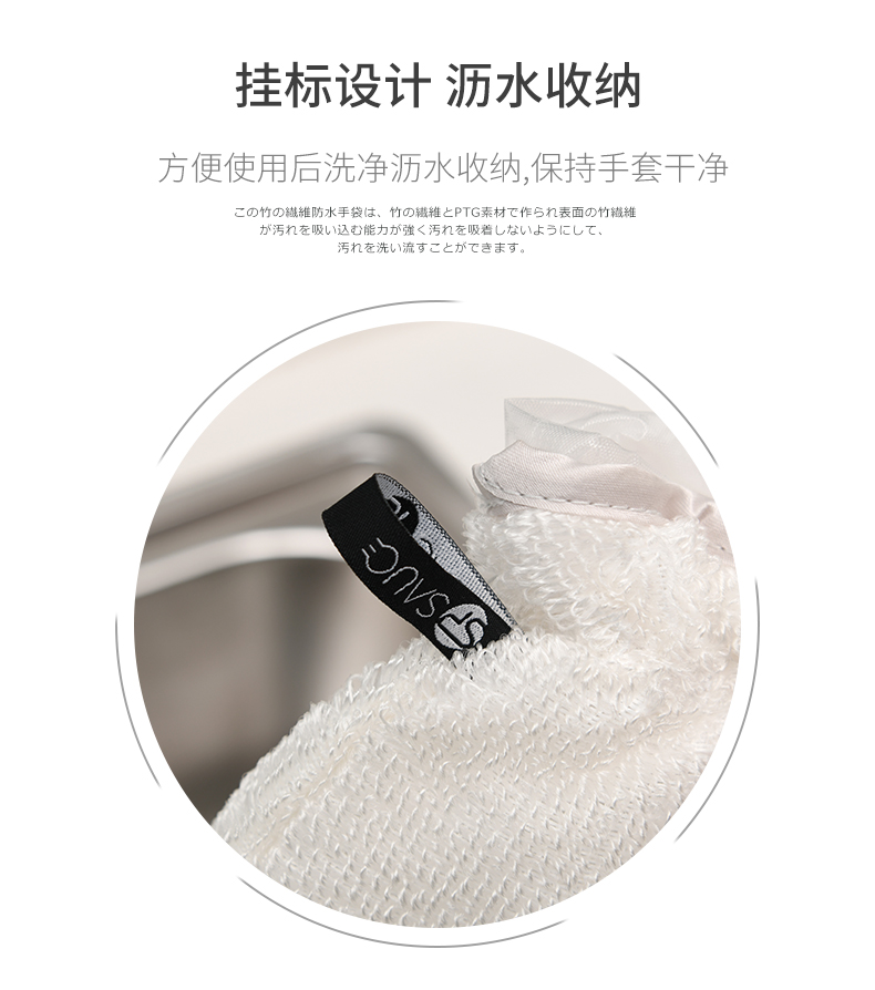 D 竹纤维防水洗碗手套 洗碗手套橡胶厨房洗菜家务用清洁耐用型薄款贴手