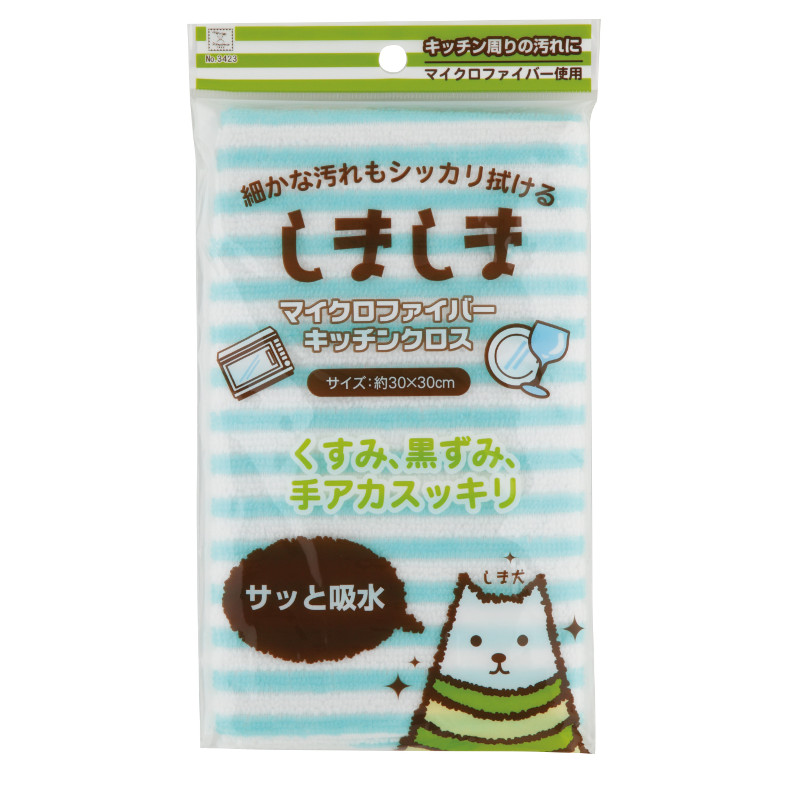 ●微纤维可以彻底擦拭桌子、餐具、水槽的污垢。 ◎可爱有条纹花纹的厨房抹布。 ◎湿擦和干擦都可以使用。湿擦的时候请拧干水使用。 ※初次使用时,请用水或温水手洗后再使用。 ◎为了卫生,尽可能多准备几张抹布,尽早更换。 ●湿抹布容易沾上杂菌,所以洗后要放在阳光下晒干。杀菌,卫生。 |