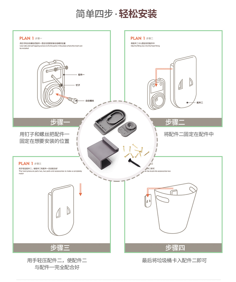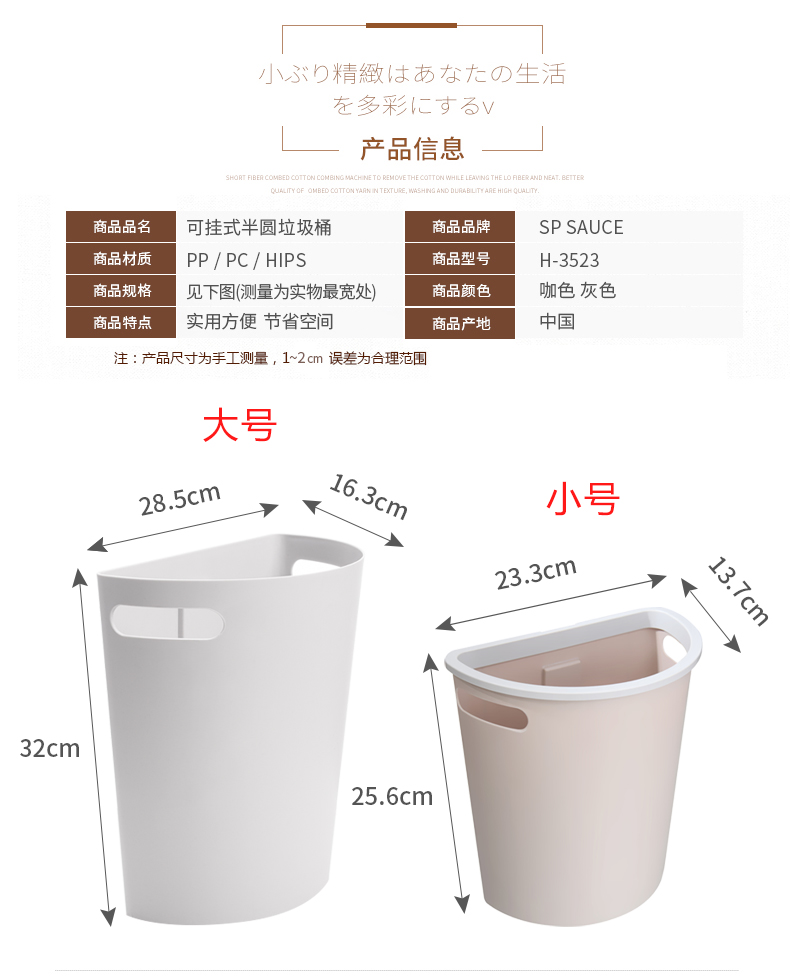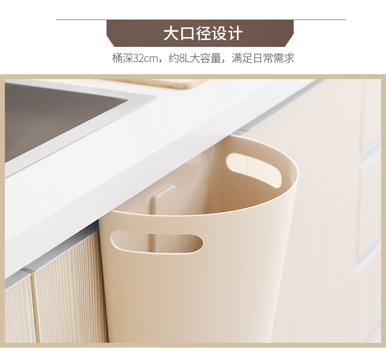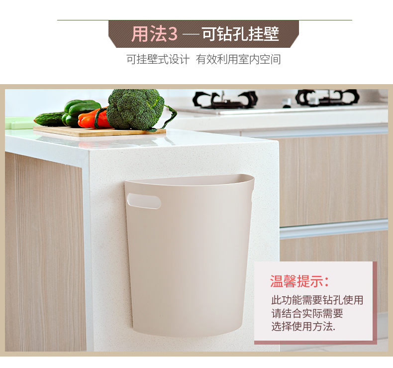 D 可挂式半圆垃圾桶 小号 可挂式半圆垃圾桶厨房卫生间客厅无盖家用悬挂式挂壁收纳垃圾筒