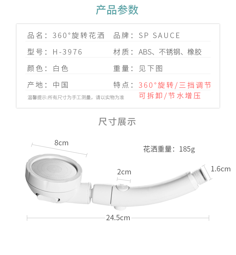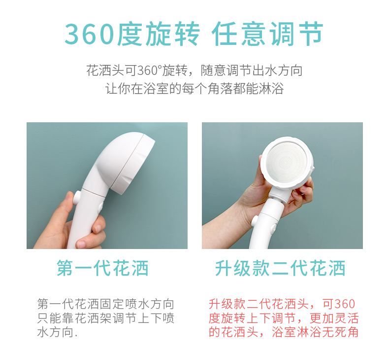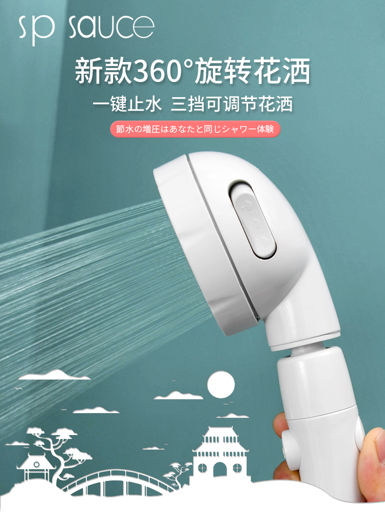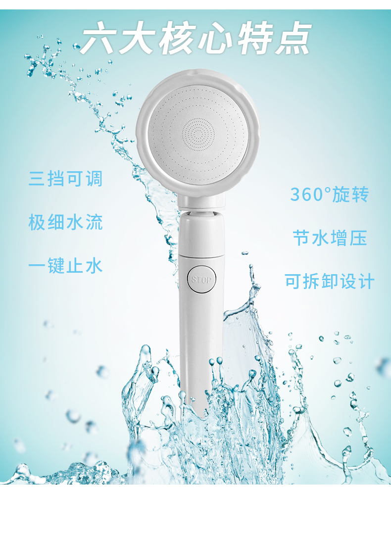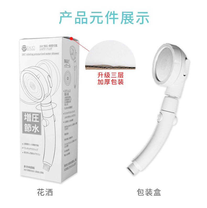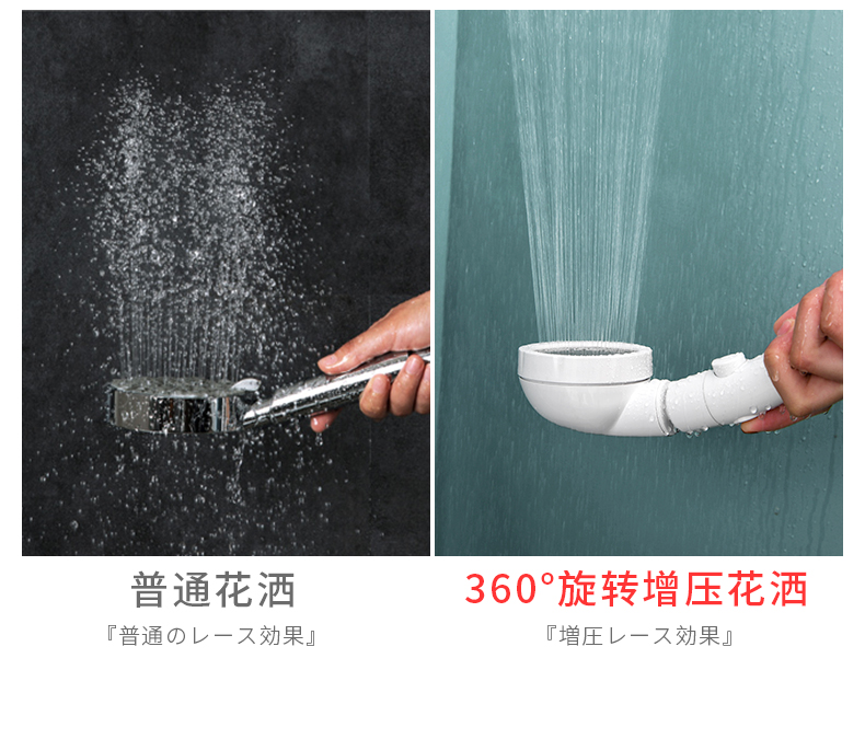 新款360°旋转花洒 自动加压花洒莲蓬喷头360度旋转增压手持淋浴带开关高压花撒