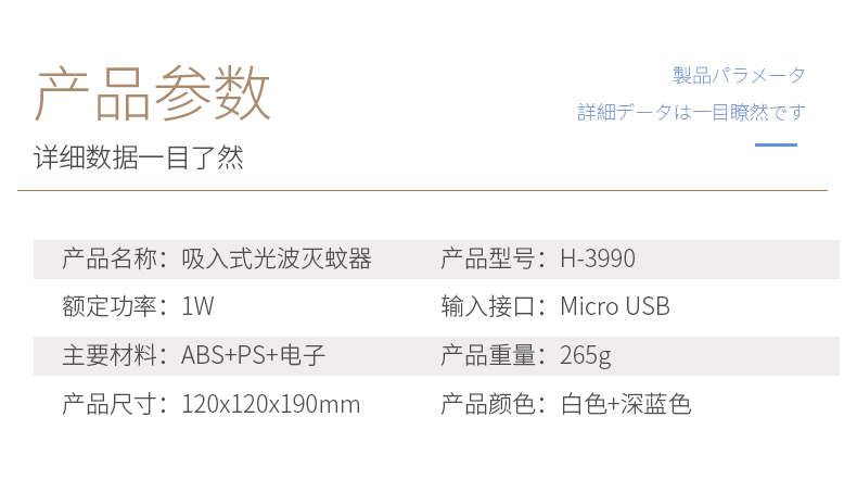 D 光波灭蚊器 日本灭蚊灯家用卧室插电静音捕蚊吸蚊子驱蚊器灭蚊神器室内全自动