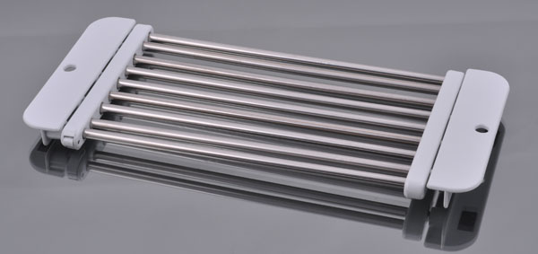 出口日本 (可自由伸缩) 水槽沥水架/滤水架 负重:3KG 尺寸:外部长30.5(拉伸前)-50.5(拉伸后)*10*0.5Hcm 内部:26(拉伸前)-45.5(拉伸后) |