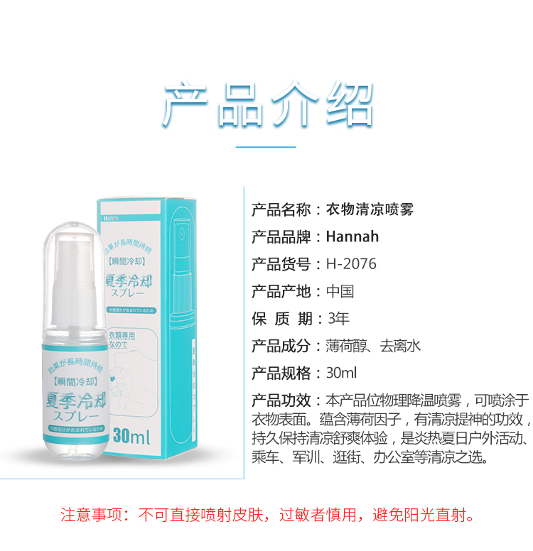 衣物清凉喷雾 衣服清凉喷雾进口夏季度假避暑学生军训神器降温解暑