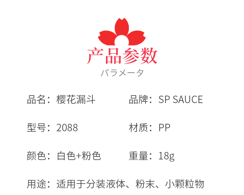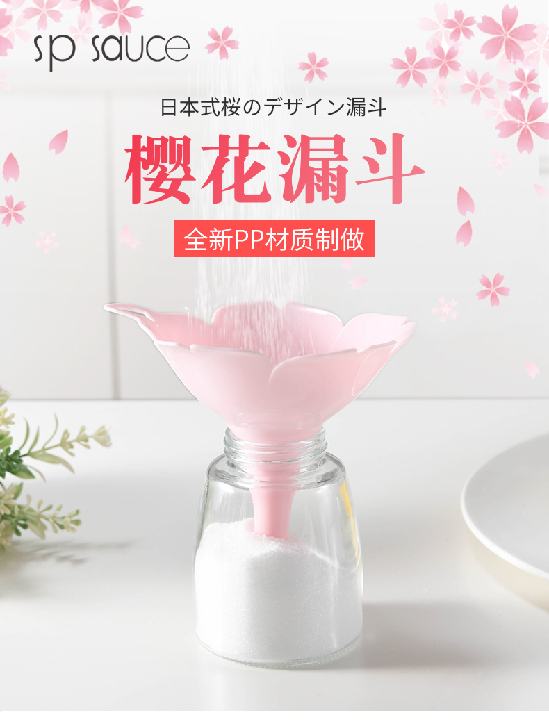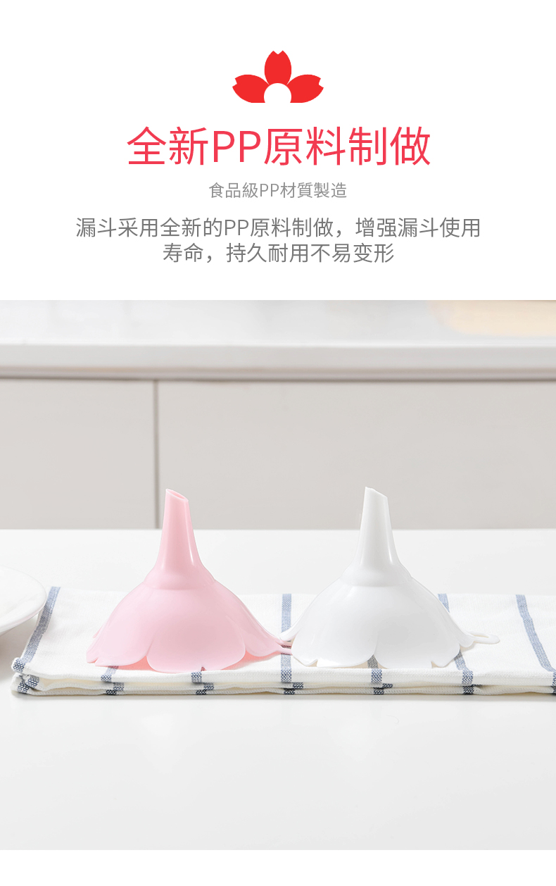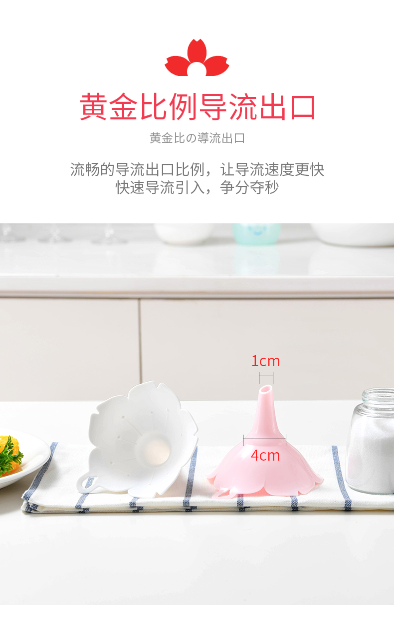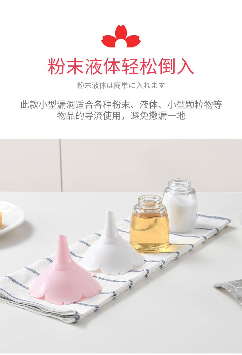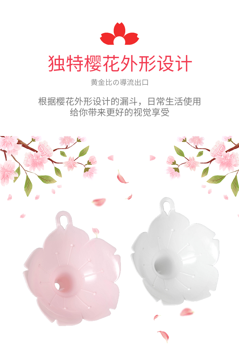 D 樱花漏斗(2枚装) 樱花漏斗家用大口径油壶漏斗液体分装器厨房塑料小号加油倒油漏斗