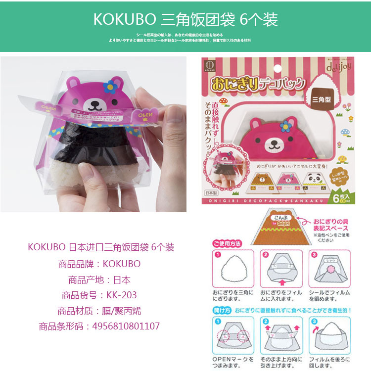 卡通料理三角飯糰包裝袋 小熊*2枚、兔子*2枚、熊貓*2枚