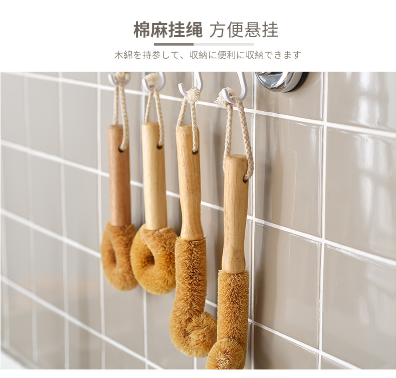 天然椰棕杯刷 加长版 天然椰棕洗杯刷奶瓶刷子长柄厨房洗杯子刷子玻璃杯清洁刷子