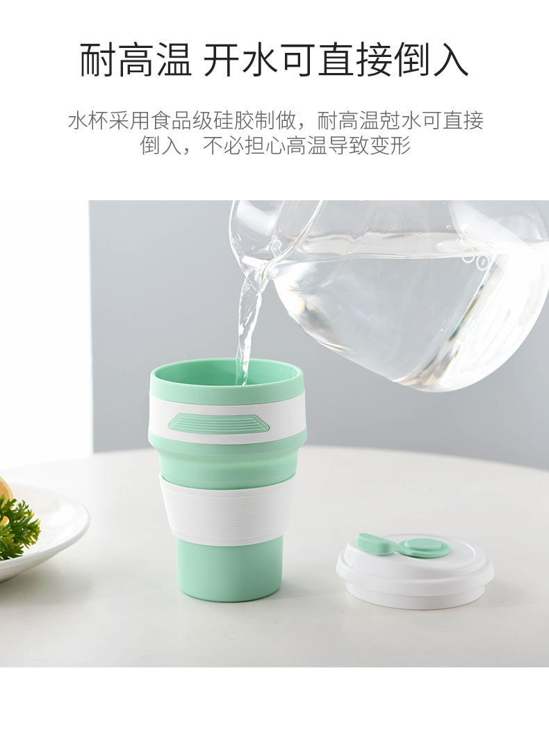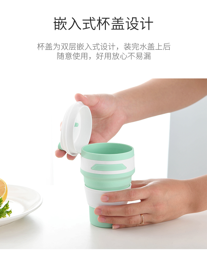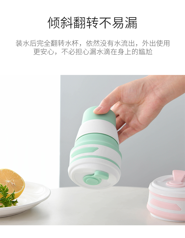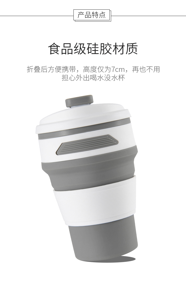 D 硅胶折叠水杯350ml 创意伸缩杯子硅胶折叠杯随手杯户外运动旅行水杯便携式