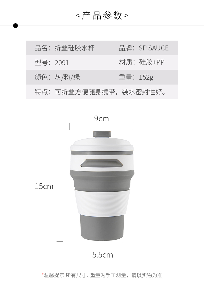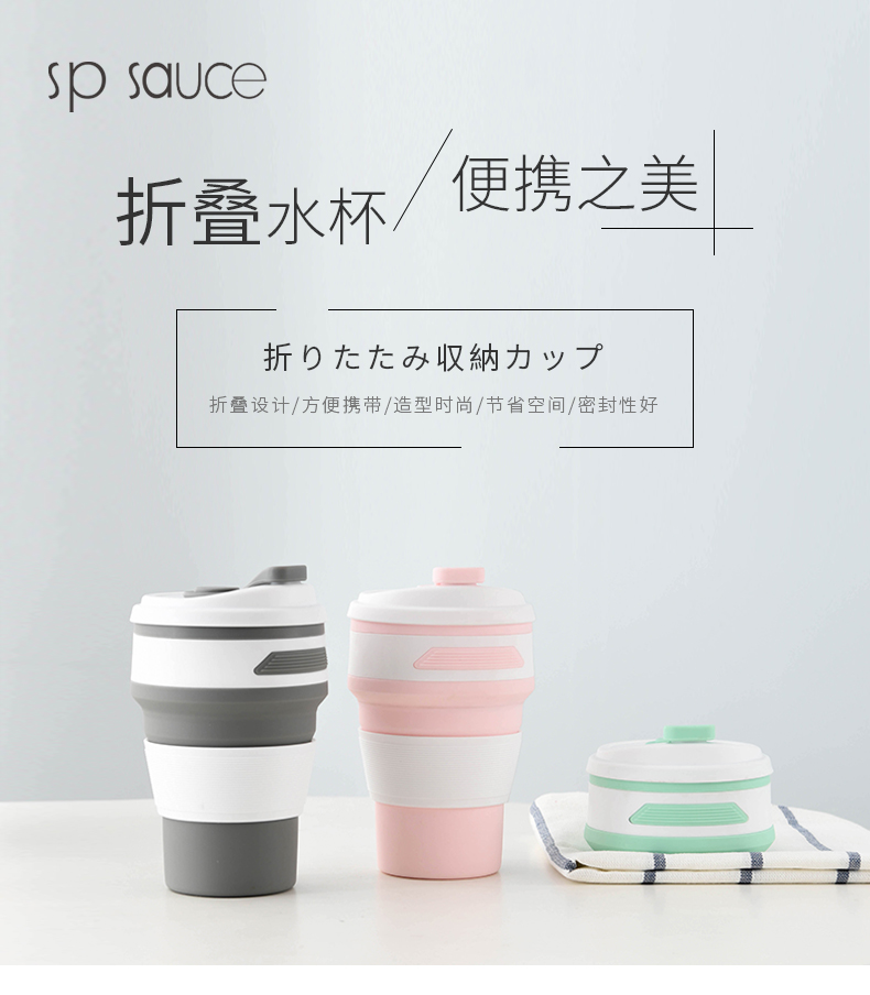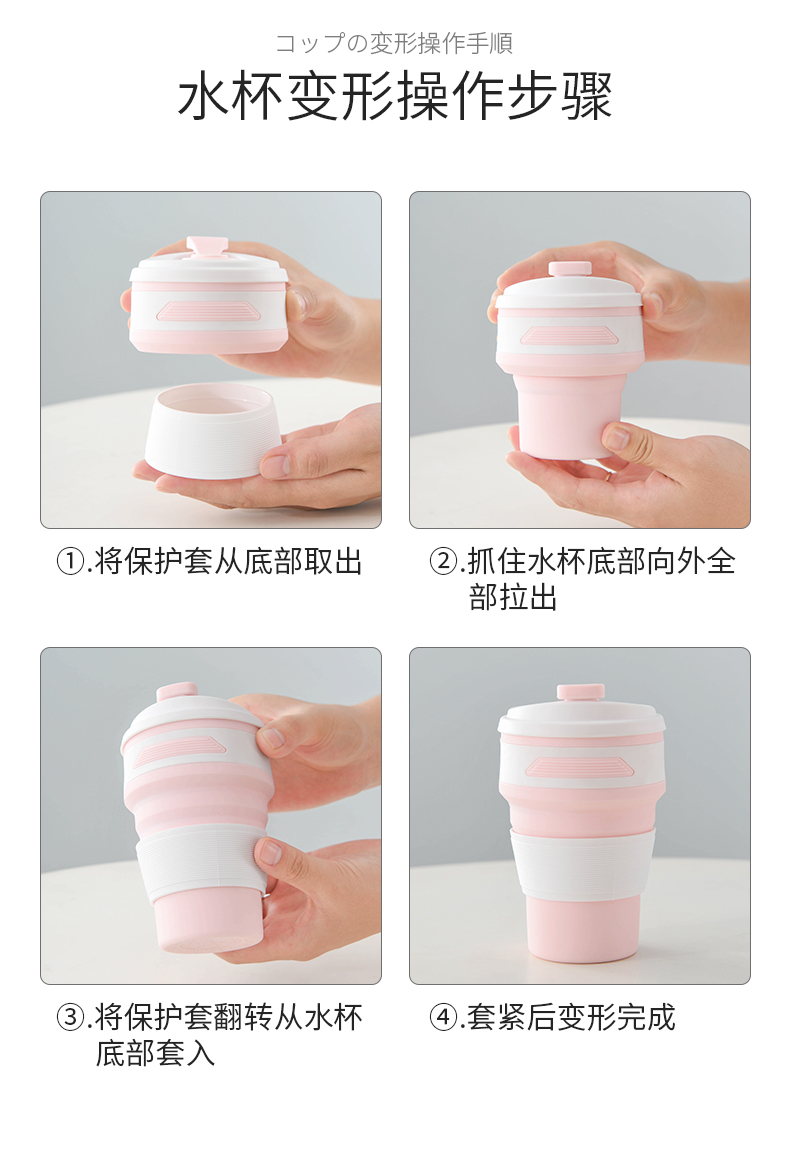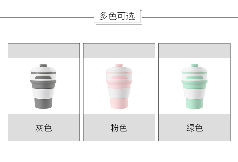 D 硅胶折叠水杯350ml 创意伸缩杯子硅胶折叠杯随手杯户外运动旅行水杯便携式