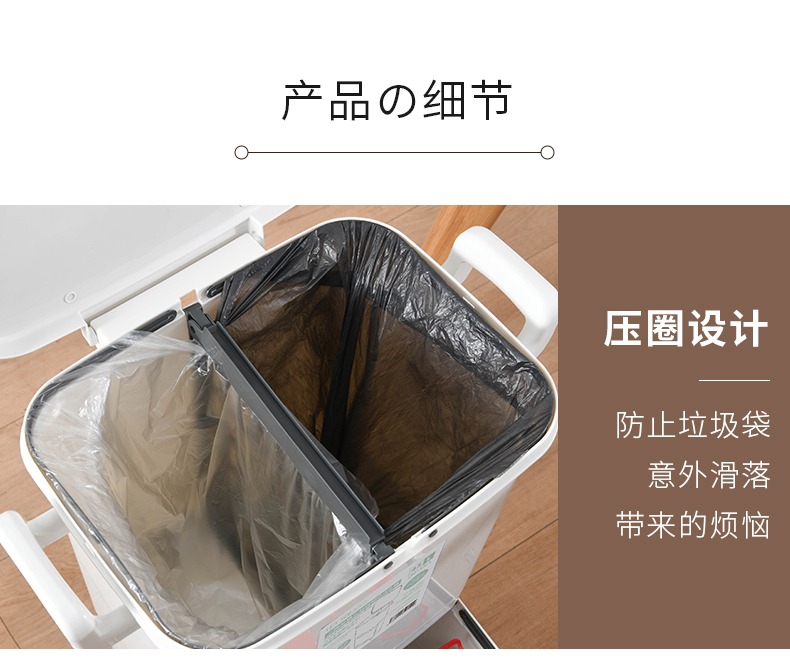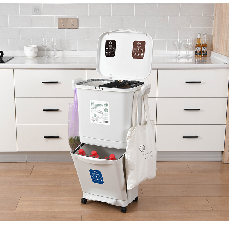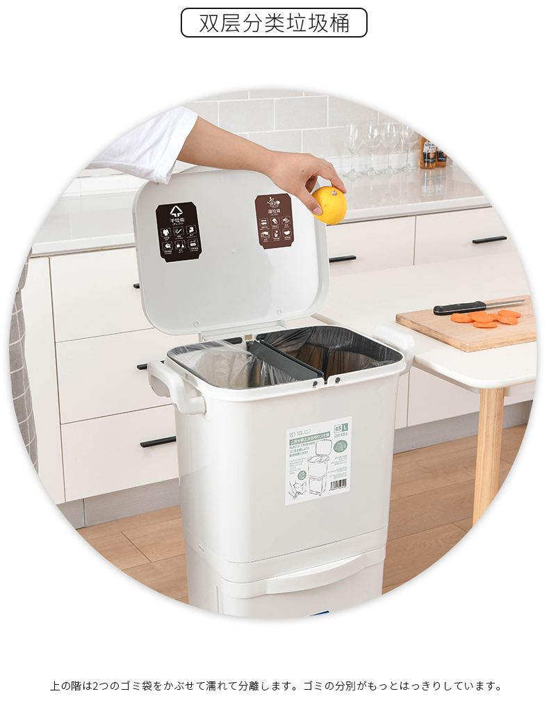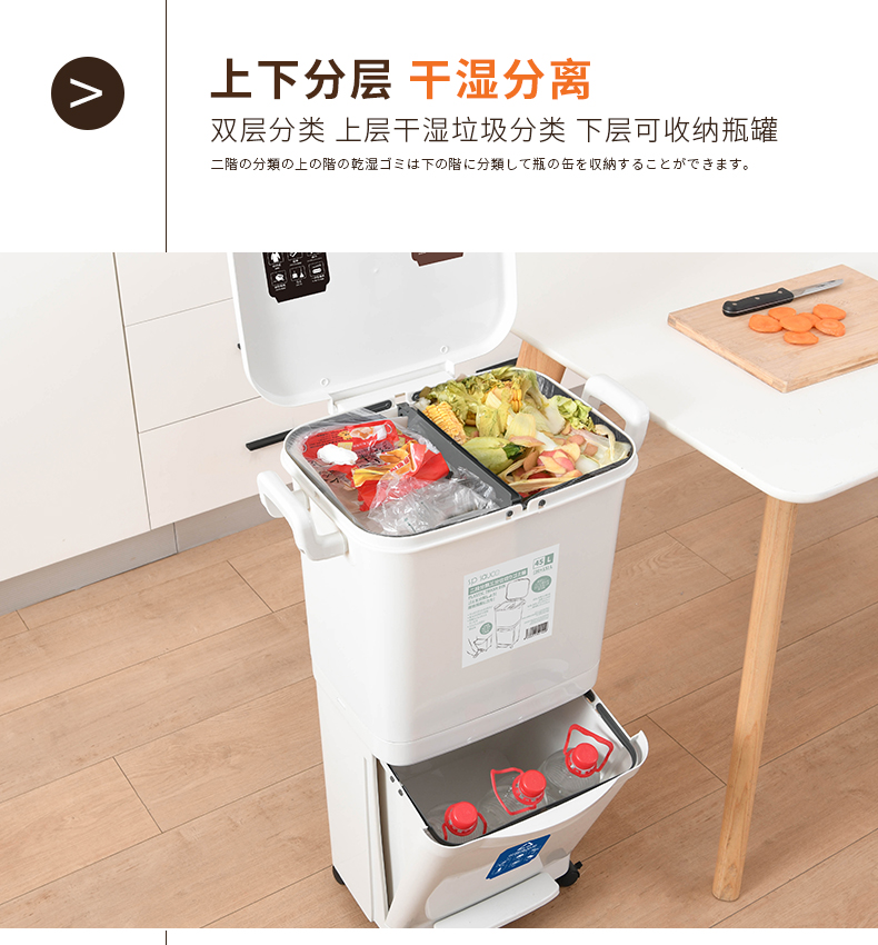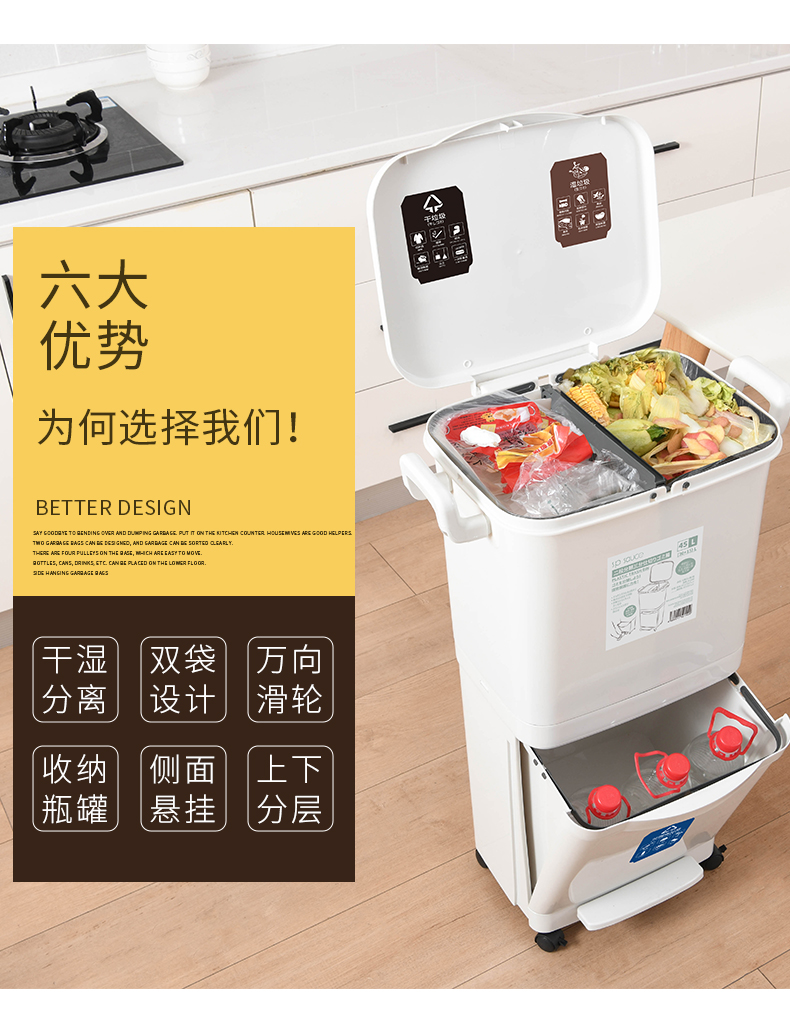 分类双层垃圾桶38L白轮带脚踏 垃圾分类垃圾桶有带盖防臭客厅高档家用日本大号厨房双层干湿分离