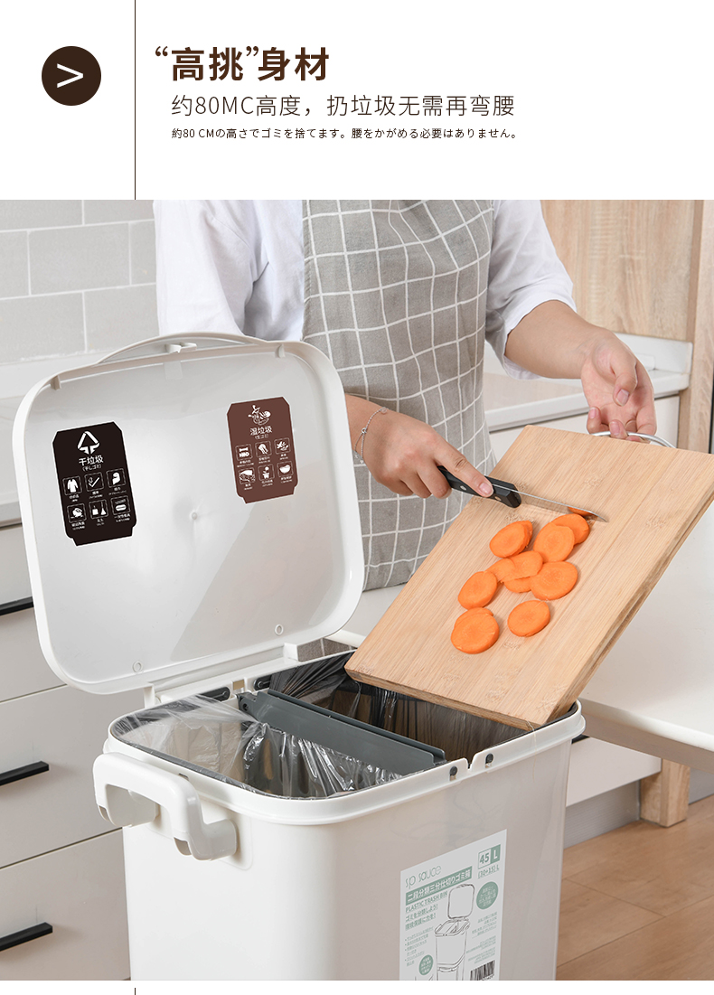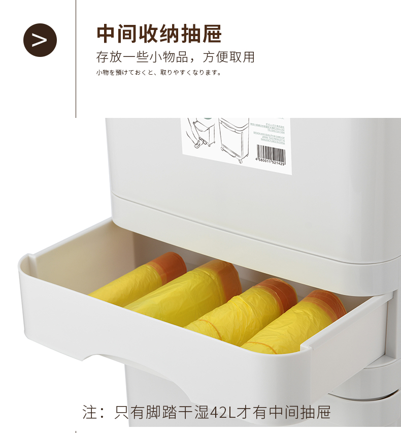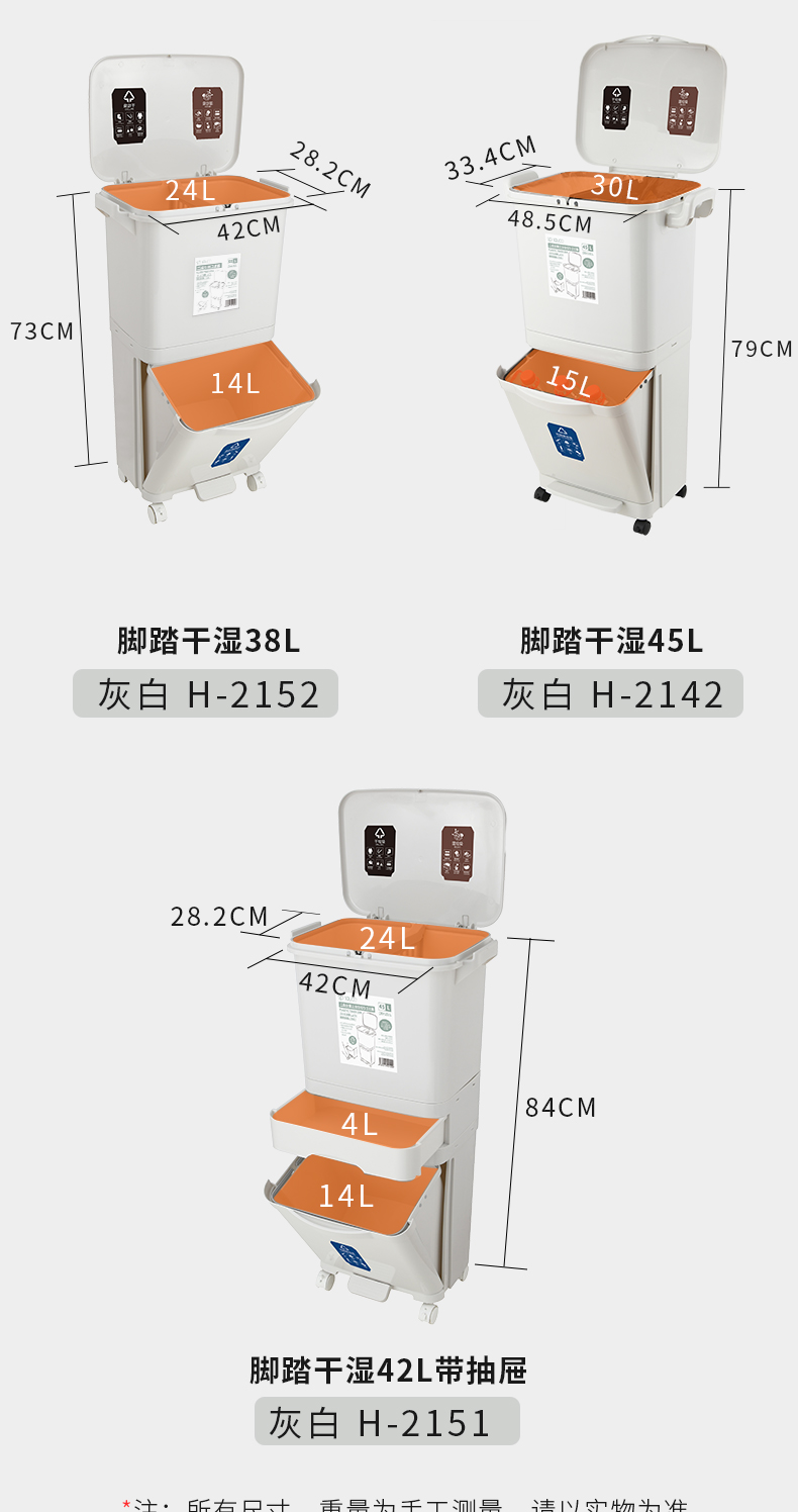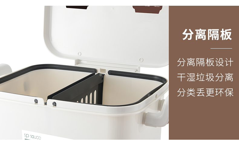 分类双层垃圾桶38L白轮带脚踏 垃圾分类垃圾桶有带盖防臭客厅高档家用日本大号厨房双层干湿分离