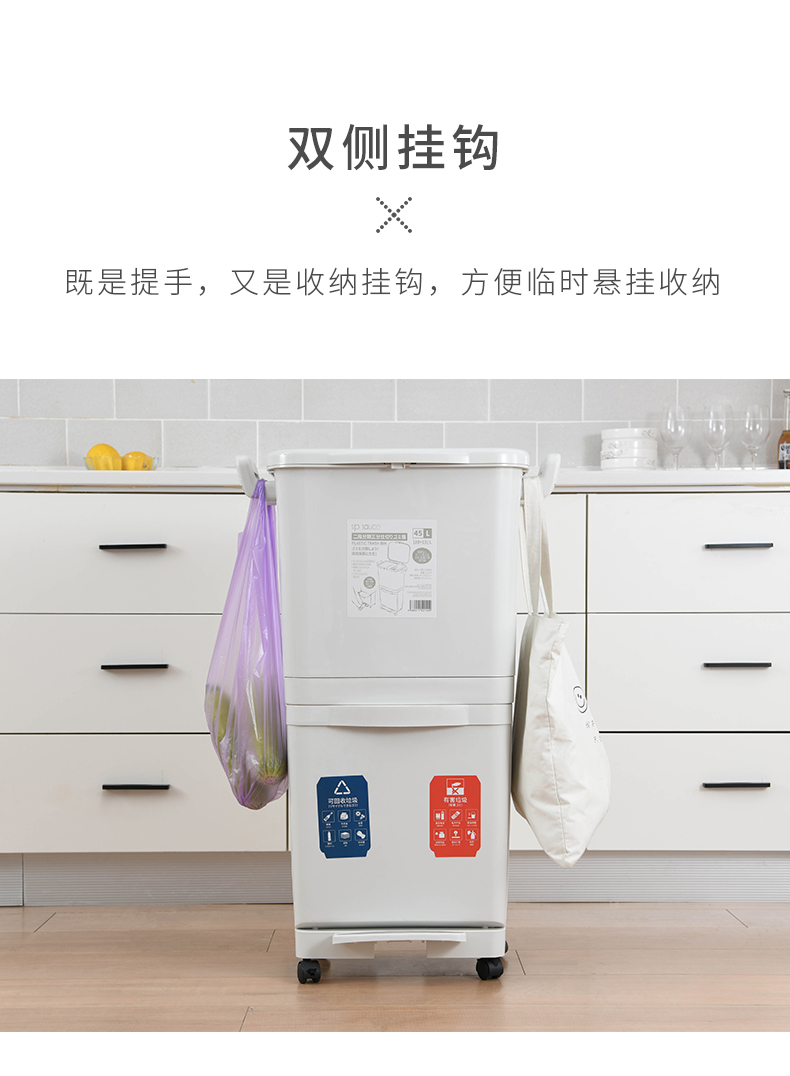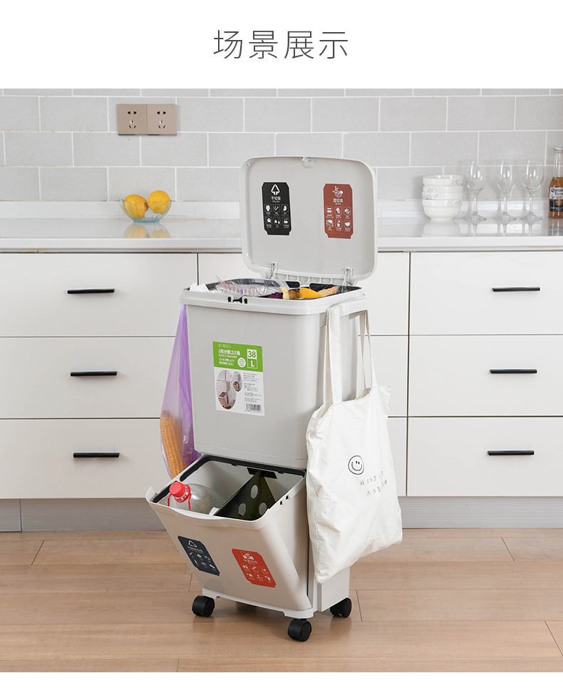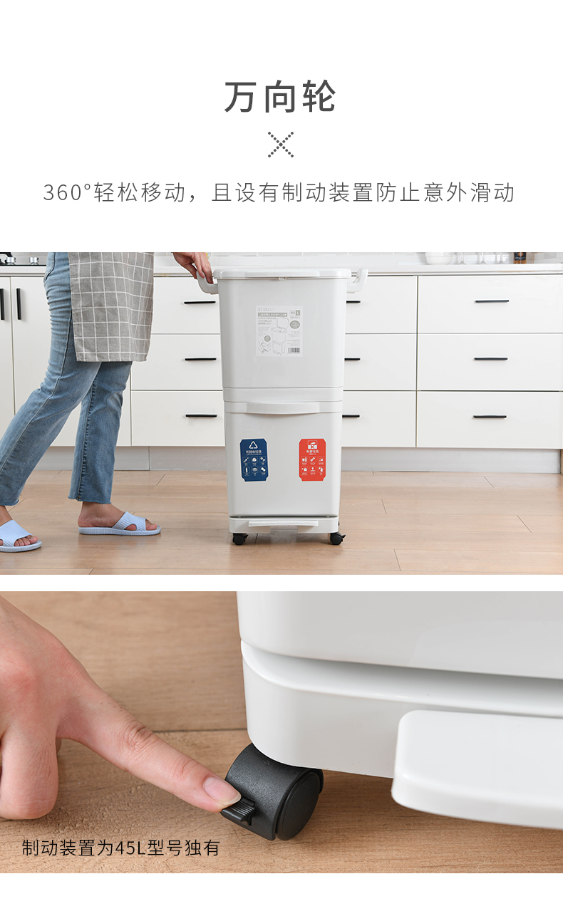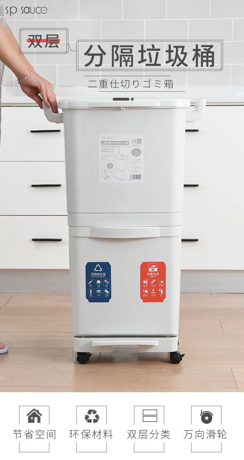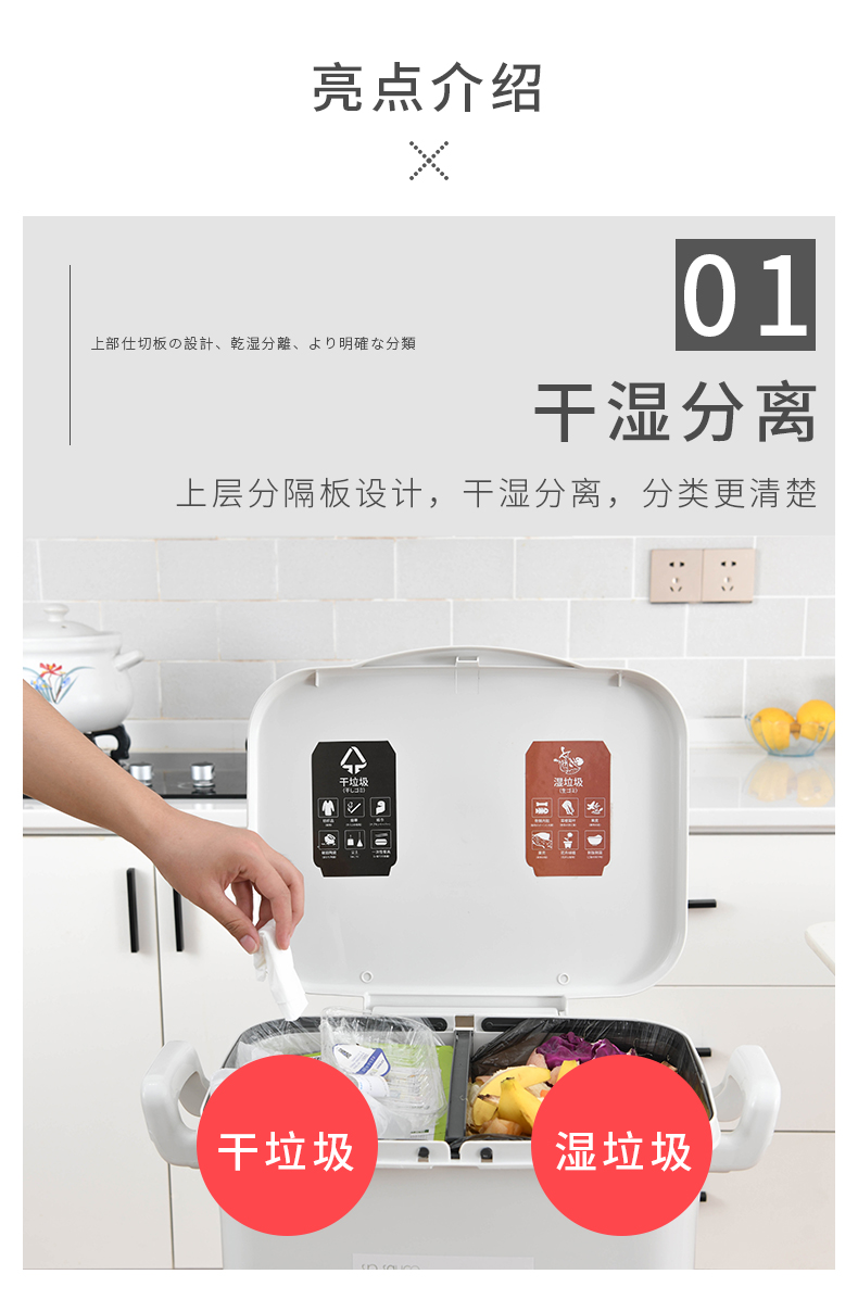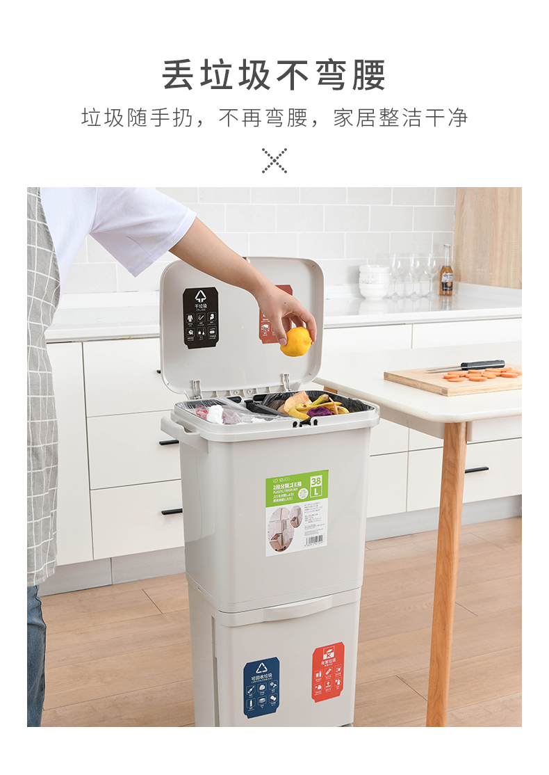 双层分类垃圾桶38L 垃圾分类垃圾桶带盖防臭家用大号厨房家庭双层干湿分离厨余筒