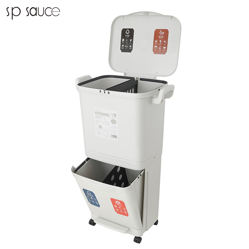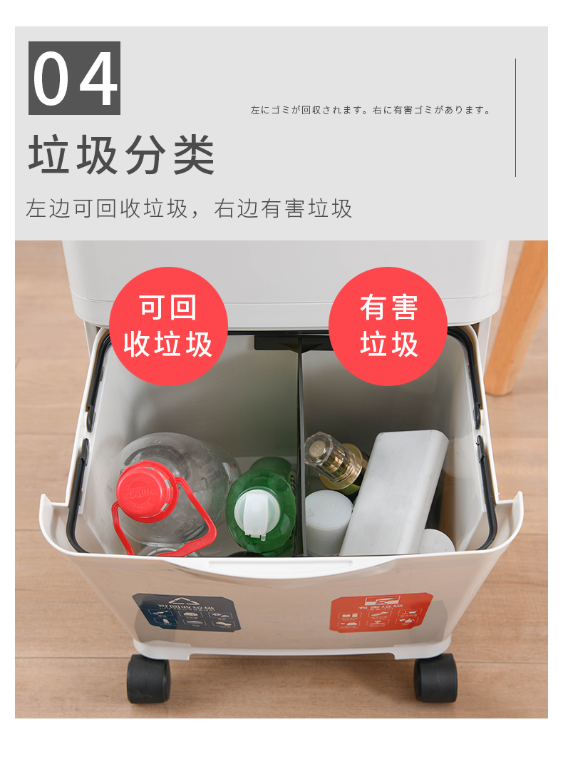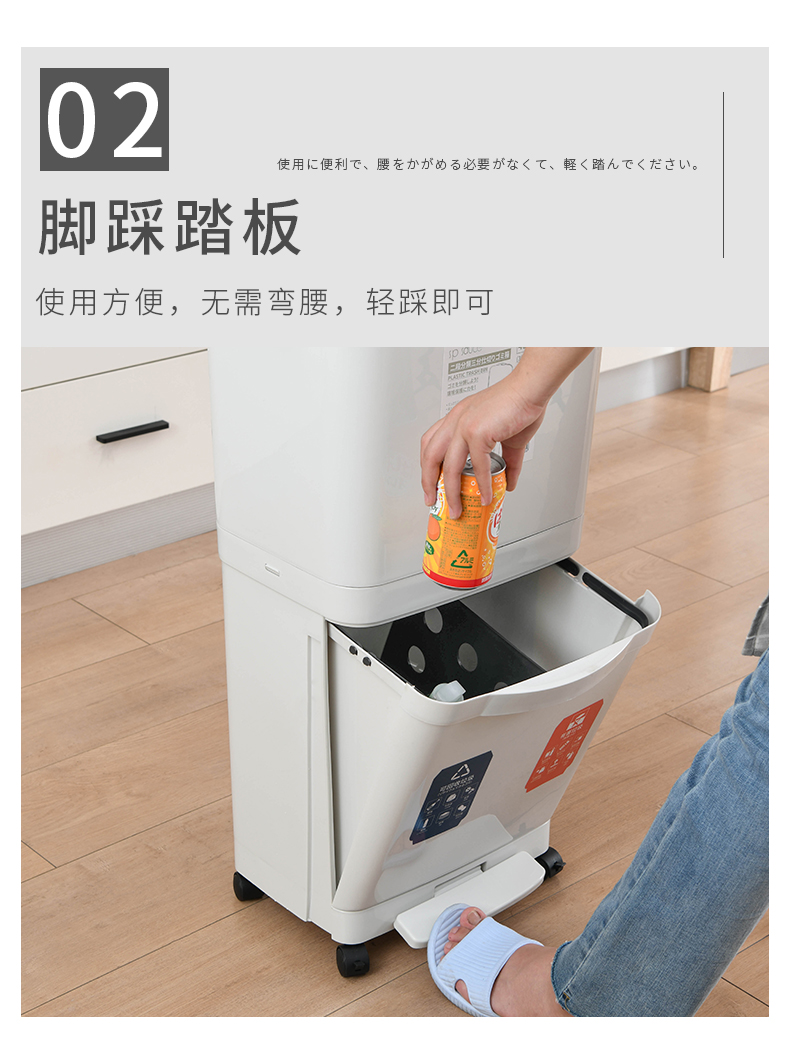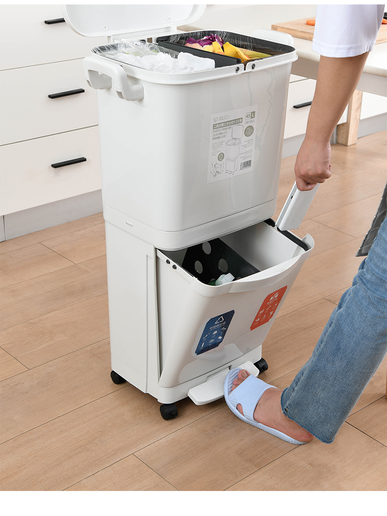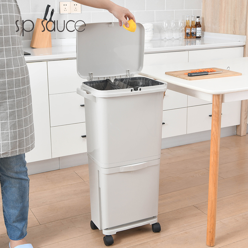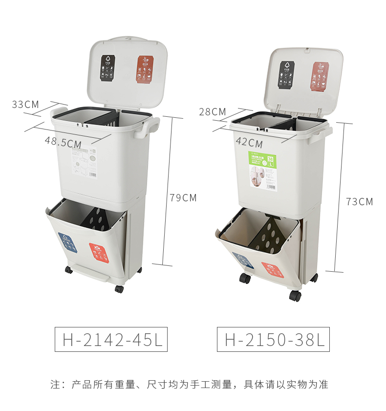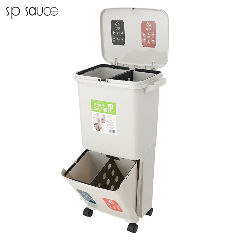 双层分类垃圾桶38L 垃圾分类垃圾桶带盖防臭家用大号厨房家庭双层干湿分离厨余筒
