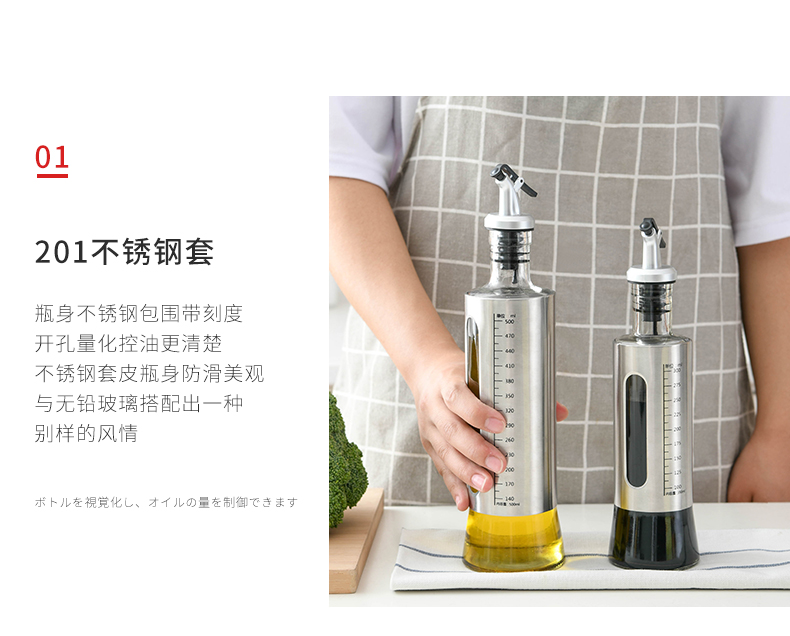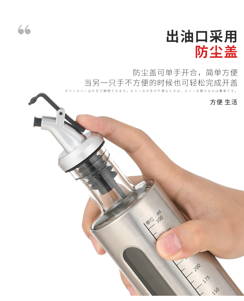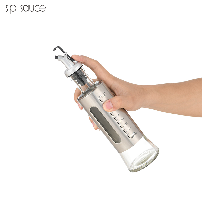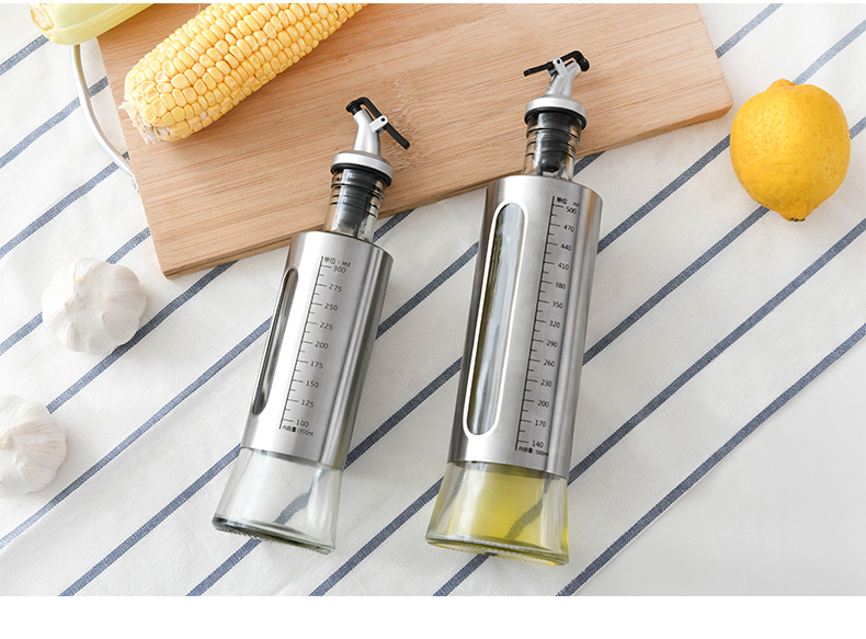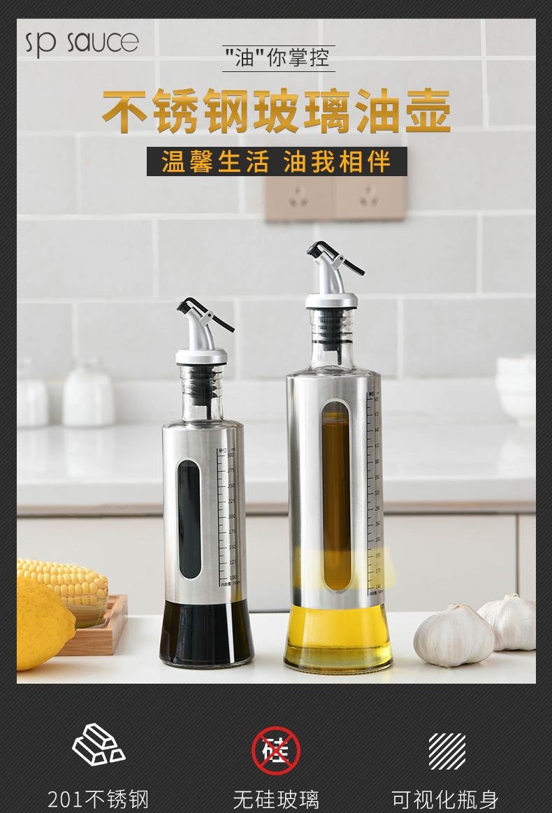 不锈钢玻璃油壶 300ml 新款创意不锈钢调味瓶防漏酱油瓶厨房家用厨房玻璃油壶