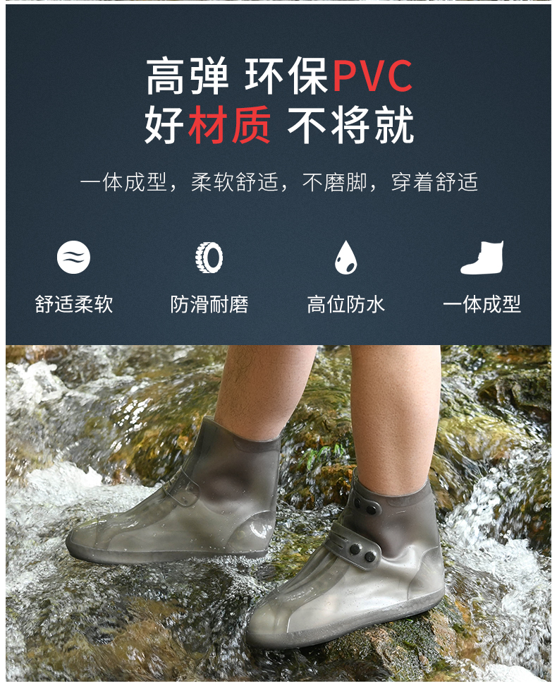PVC软胶鞋套 雨鞋套男女款户外防水防雨鞋套防滑加厚耐磨底成人下雨天雨靴儿童