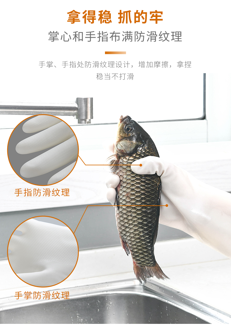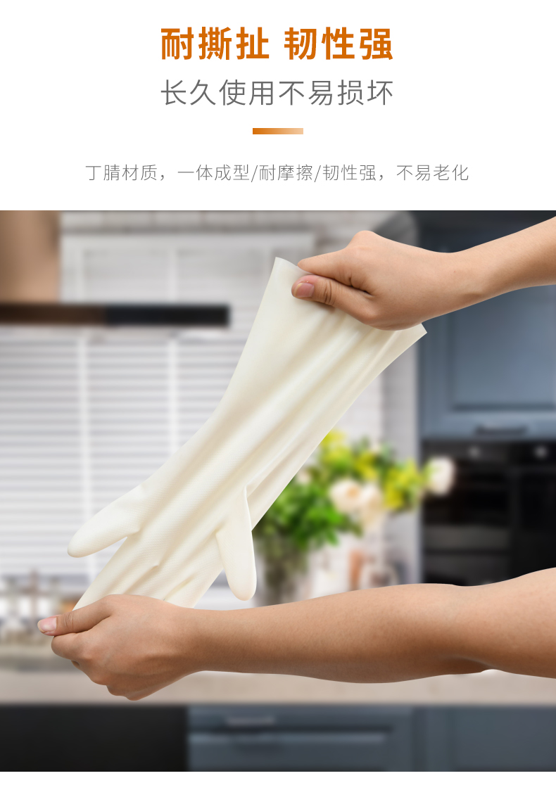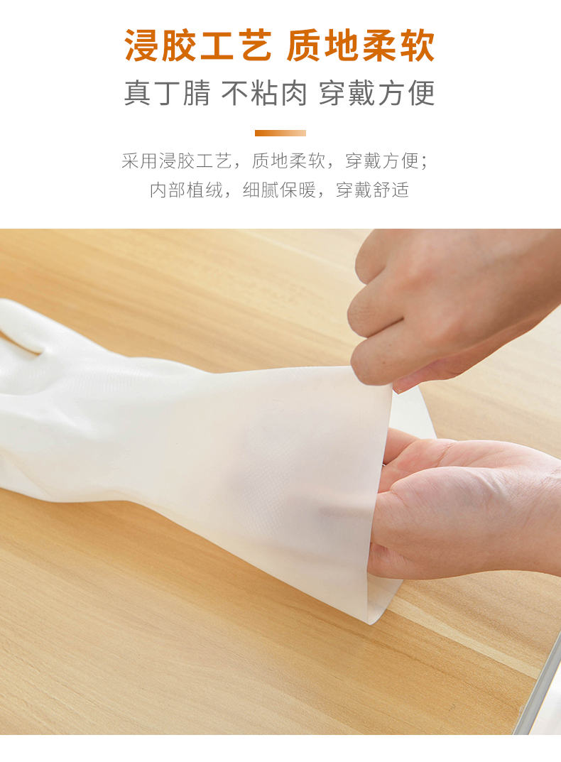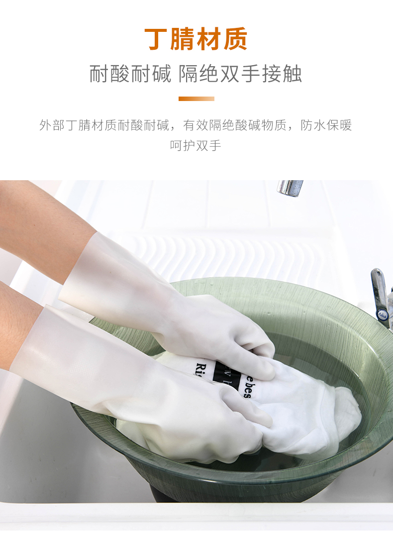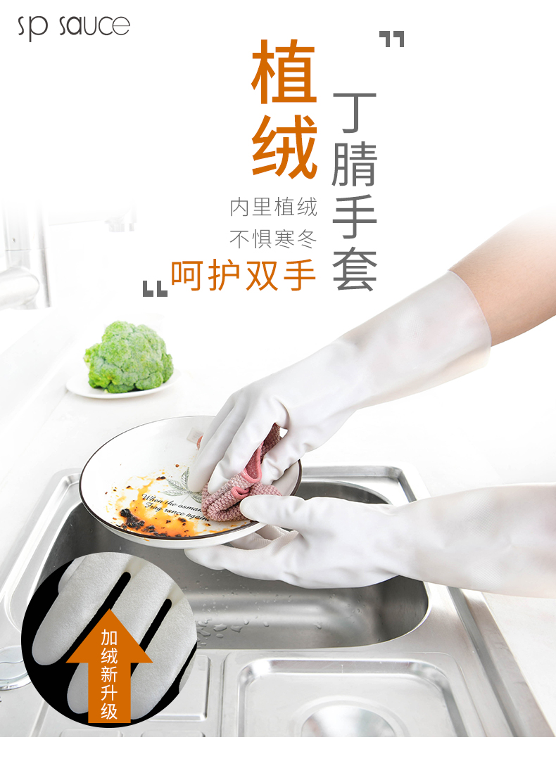 D 植绒丁腈手套 半植绒 丁腈橡胶手套加绒洗碗家务清洁家用厨房耐磨防水耐用塑胶手套
