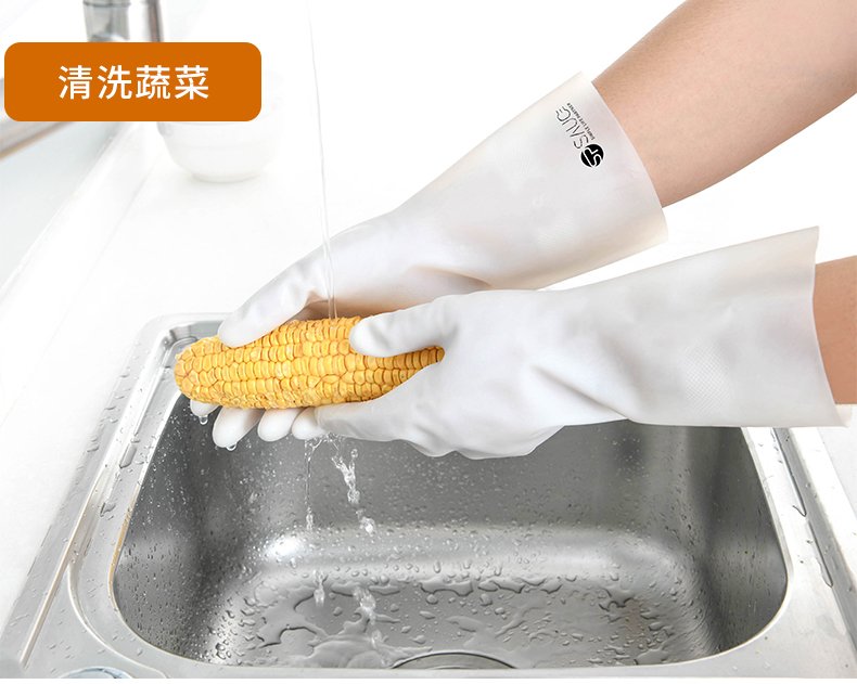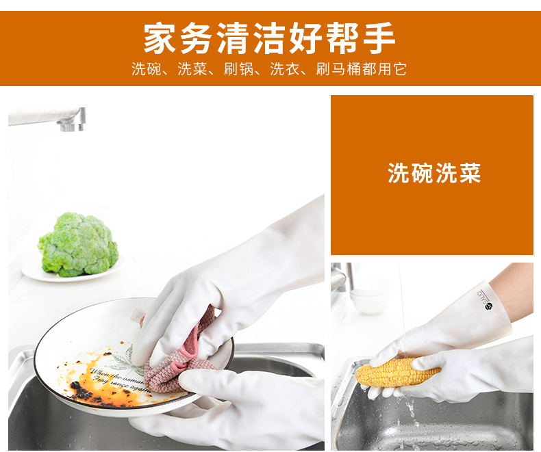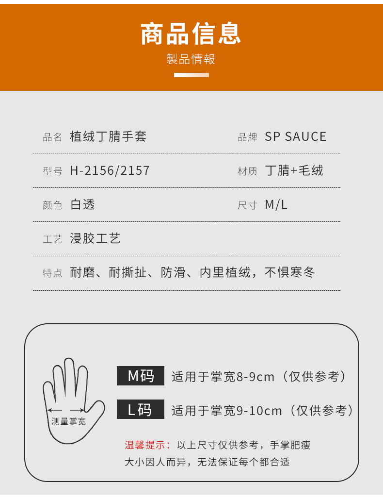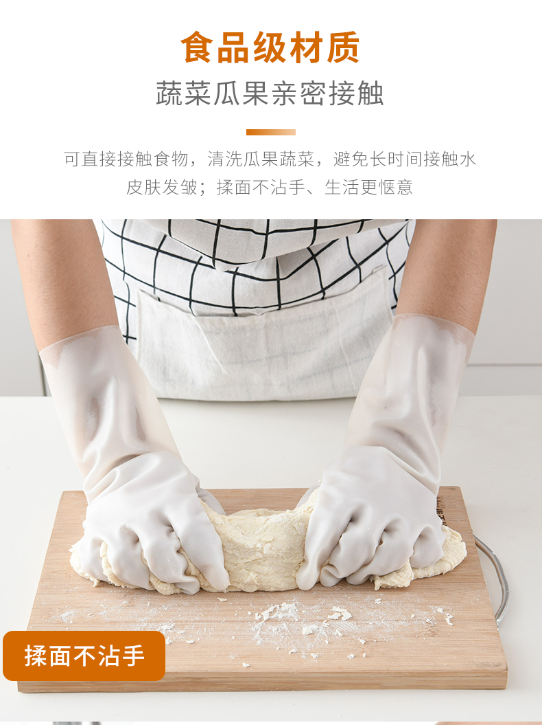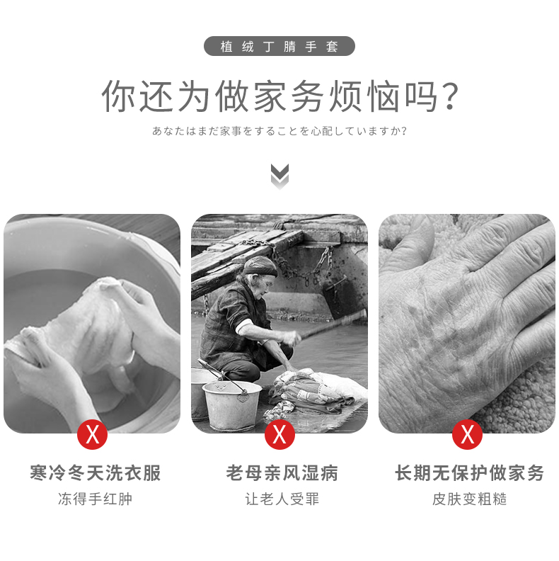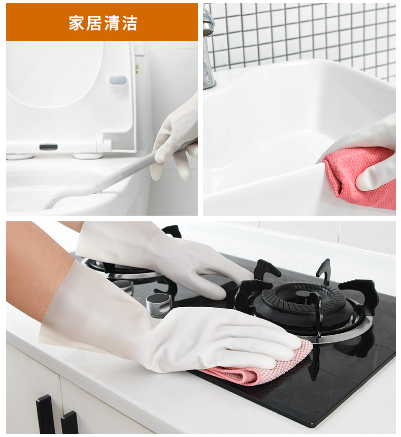 D 植绒丁腈手套 半植绒 丁腈橡胶手套加绒洗碗家务清洁家用厨房耐磨防水耐用塑胶手套