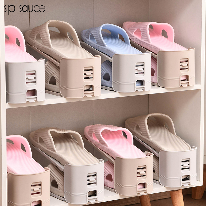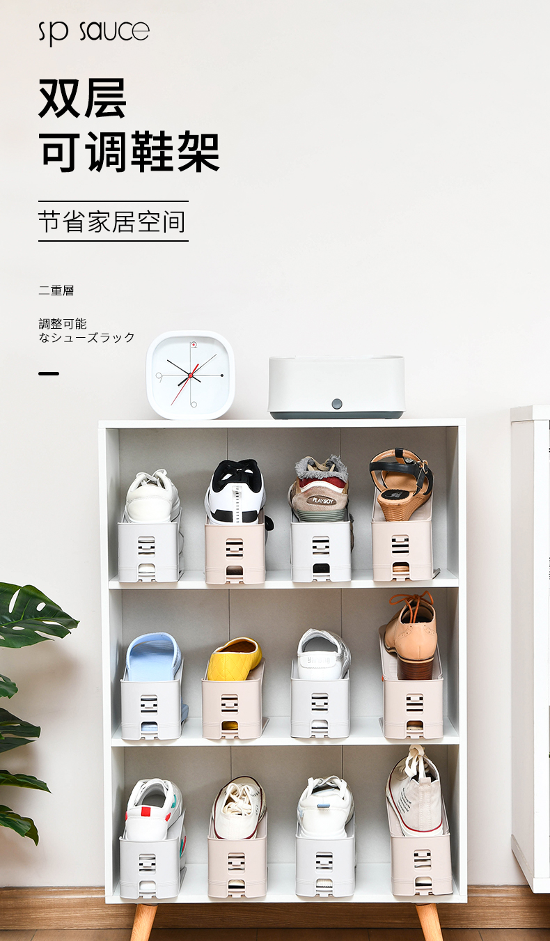 D 可调节鞋架 家用简易组装鞋柜鞋架经济型鞋子收纳架塑料双层可调节一体式鞋托