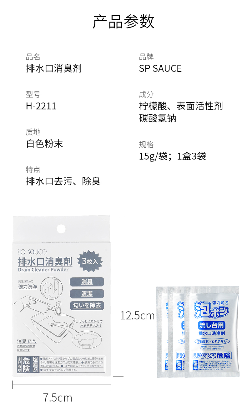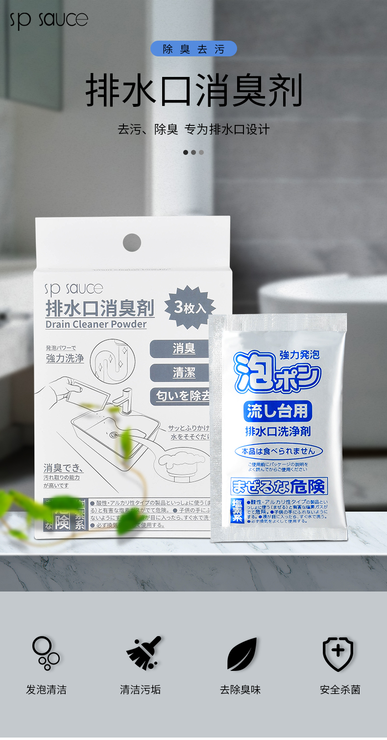 D 排水口消臭剂3枚入 排水口消臭剂排水口反味除菌消臭剂下水管道除臭除异味除垢剂
