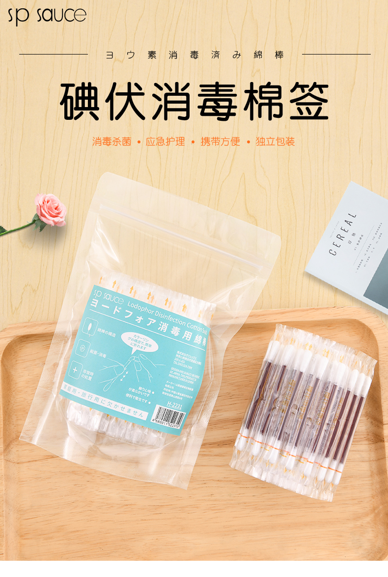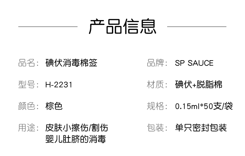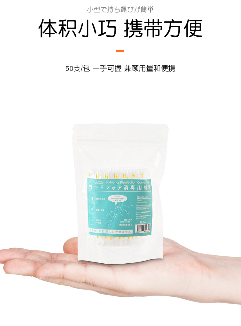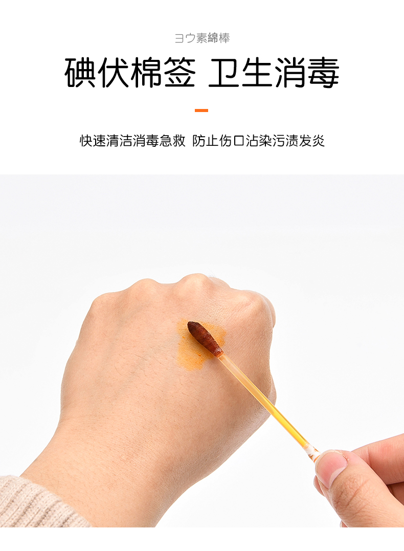 D 碘伏消毒棉签(50支) 碘伏棉棒棉签酒精消毒液75度医药棉球新生婴儿肚脐一次性伤口碘酒