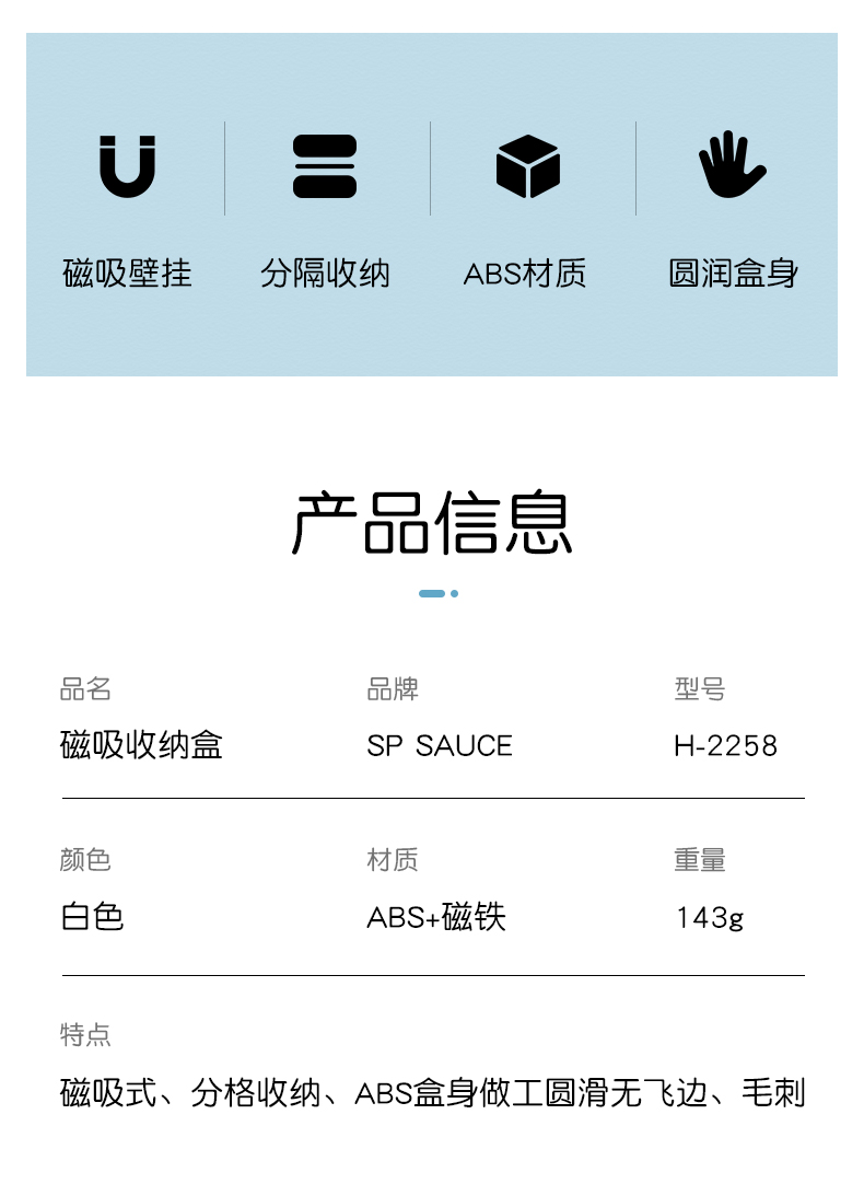 D 多功能分隔磁吸收纳盒 家用磁吸收纳盒子多功能免打孔整理挂篮分隔储物盒冰箱收纳篮